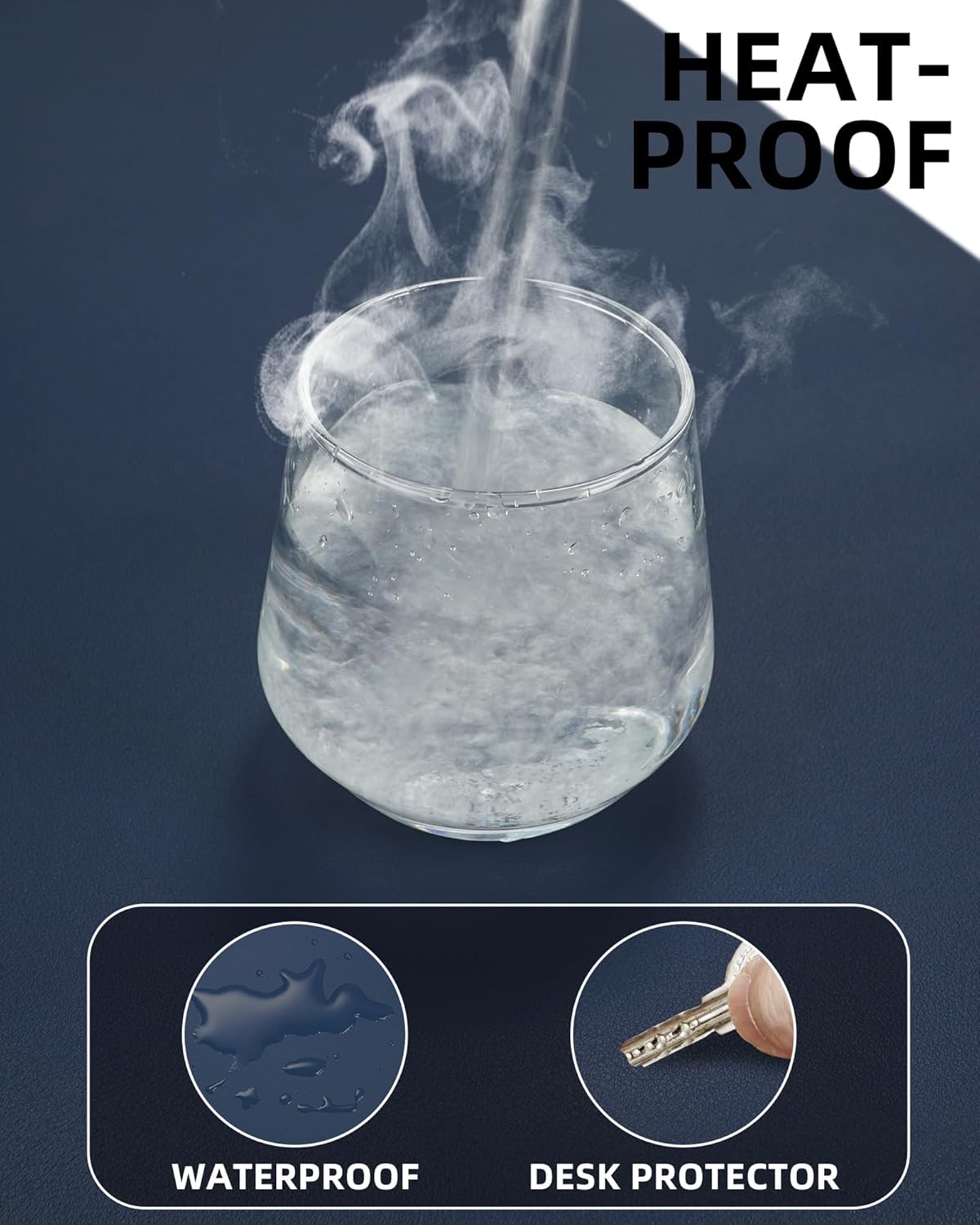 Leather Desk Pad Protector,Desk Mat,Large Mouse Pad, Non-Slip Desk Pad, Waterproof PU Leather Desk Blotter Mat, Desk Cover for Office and Home (Midnight Blue, 36" x 17")