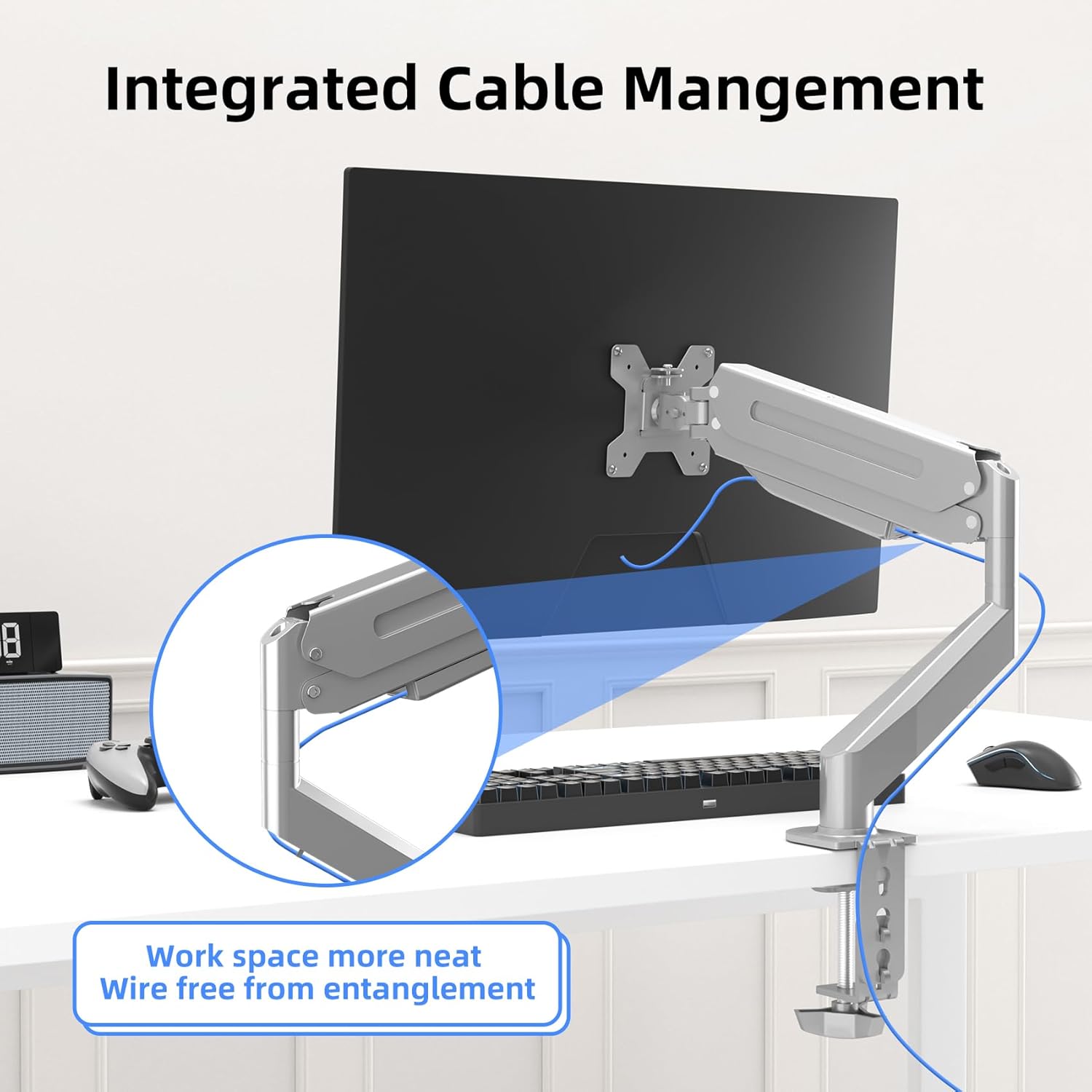 - Two install options - C-clamp and optional grommet base (fits desk up to 3.85" thickness) save your valuable desk space.