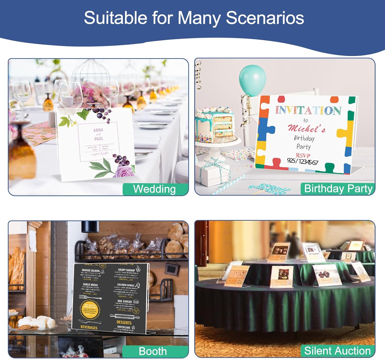 - 【Acrylic Sign Holder 5 x 7 Horizontal】: Our acrylic sign holder is a standard size of 7 x 5 inch, suitable for all pictures, text and logos printed.