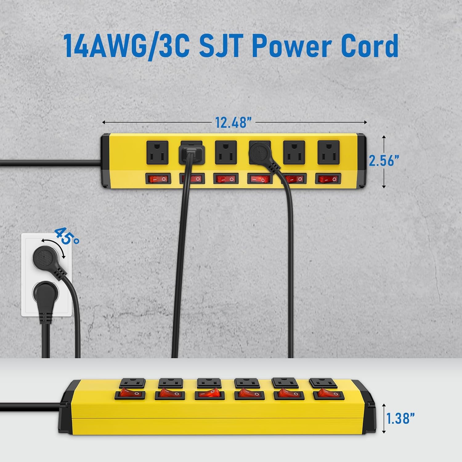 - Crafted from extra thick aluminum alloy housing, this heavy duty power strip offers extremely strong wear resistance, fire protection and impact prevention, ensures long-term reliable performance. Perfect for garage, workshop, office, home, school, etc.