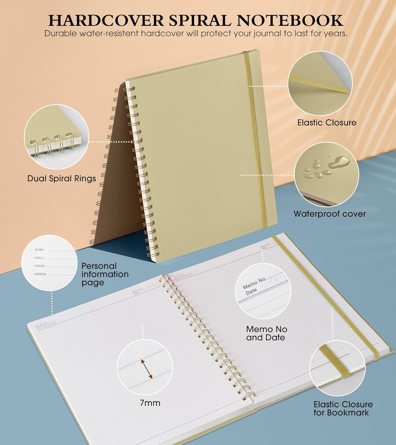- 【Strong Spiral Metal Twin-Wire】 Our spiral journal notebook has a sturdy gold-color double wire spiral with easy-to-turn pages and keeps pages attached reliably, while still staying flat when opened, which reading more convenient and taking notes more efficient. Spiral bound journal easy to tear-off and fold over, as well as flip the cover back, giving you a better writing experience. Golden spiral bound adds aesthetic matching, it’s the perfect big notebook for journaling, and planning.