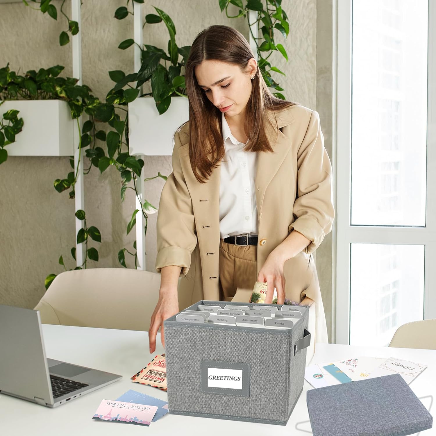 - [Versatile Storage Box]:This organizer box not only holds greeting cards, but also stores stickers,photos,envelopes,recipes,seeds,bills or more other items.