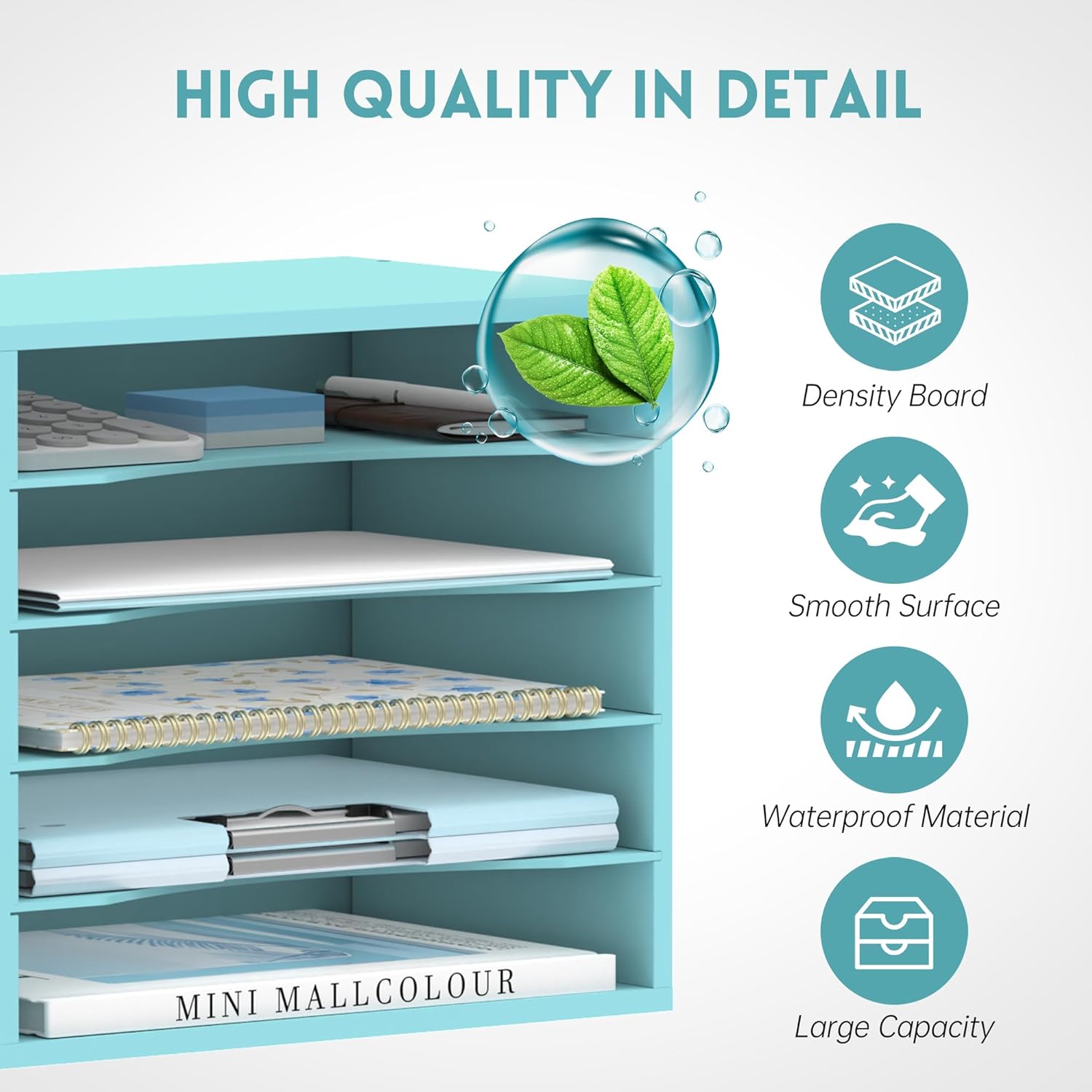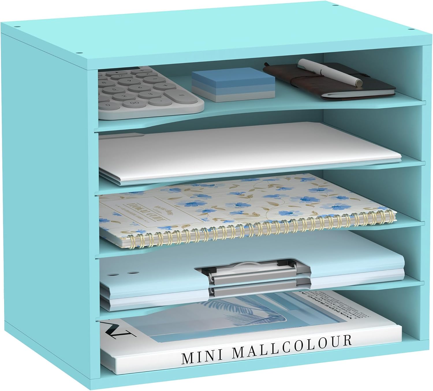 SUPEASY Wood Desk Organizer, 5 Tier Paper File Organizer for Desk, Wooden Desktop Organizer, Paper Letter Literature Mail Sorter, for Office School & Home Organization, Blue