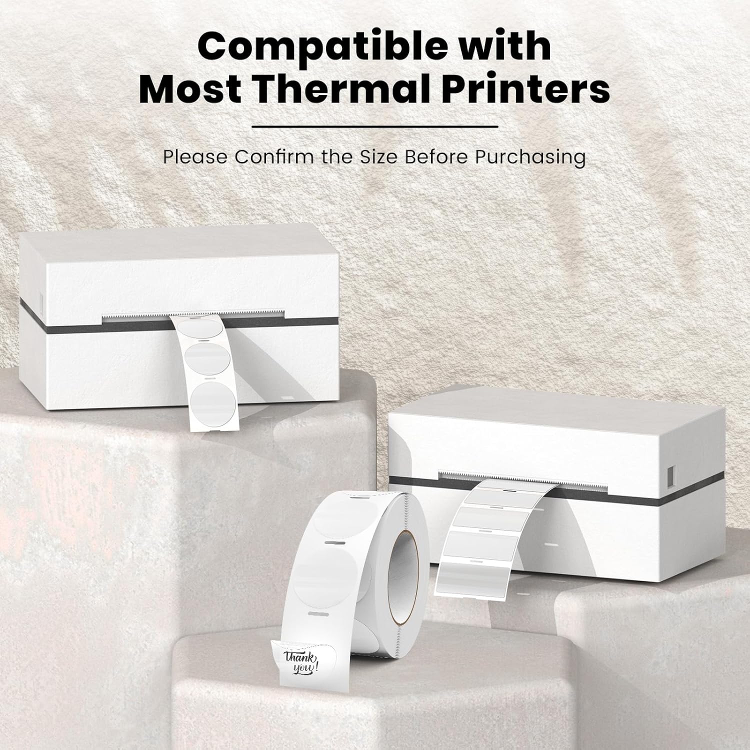 - Package: Print size of FINDAT transparent round thermal stickers is 1" with 500 pieces per roll. Suitable for most direct thermal printers. Note: Not for mini printers,such as M110, M120, M220, T50m Pro.