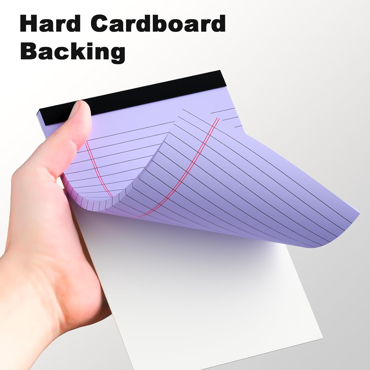 - Purple colored Legal Pads 5 x 8 Inch are perfect for students, teachers, and professionals. Made with premium 80gsm thick paper, these notepads provide a luxurious writing experience. The colored paper resists ink bleeding, while the black lines and double red margin lines offer ample space for your notes.