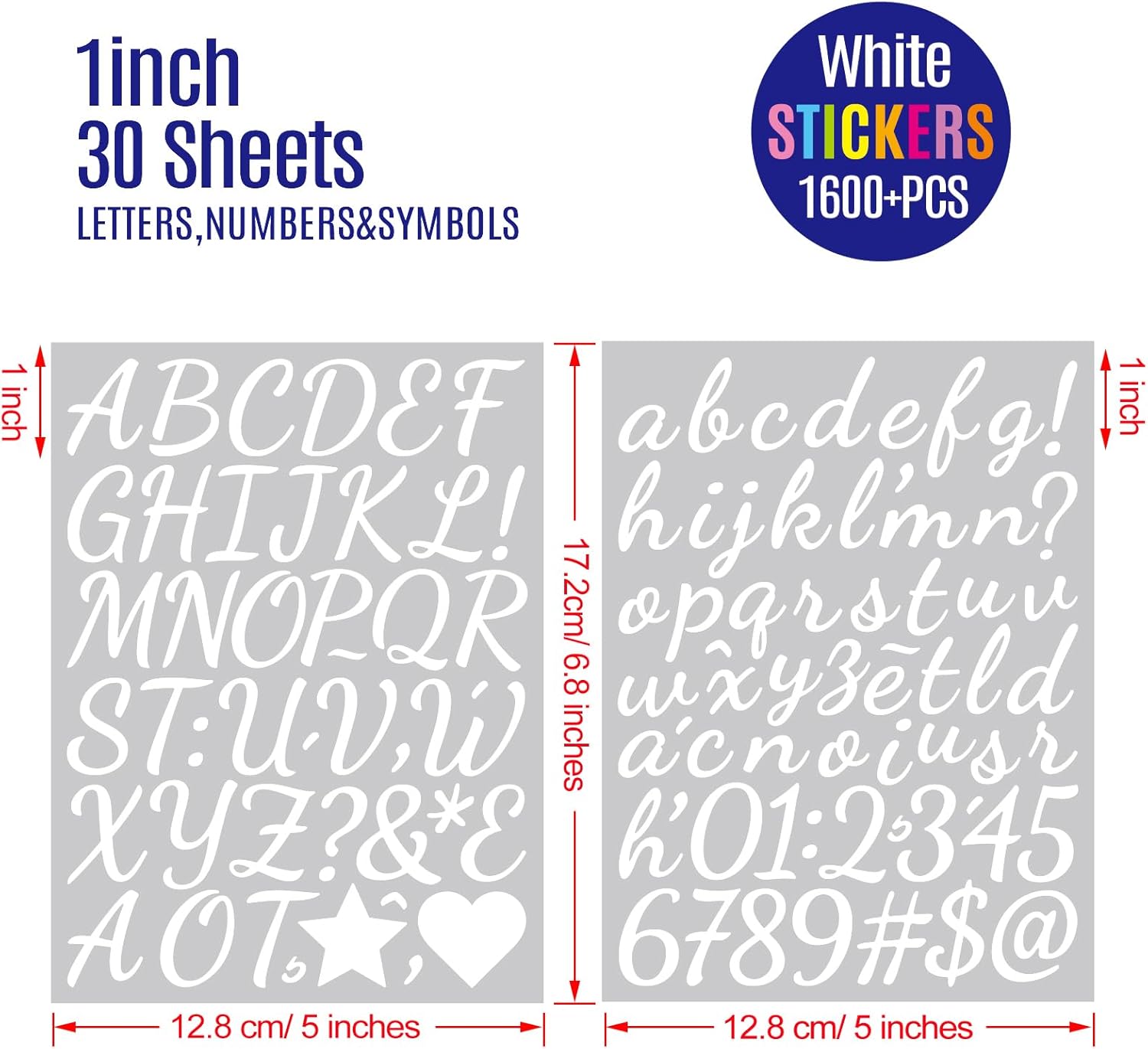 Letter Stickers 30 Sheets 1600 Pieces Alphabet Sticker 1 Inch Vinyl Self Adhesive Stick on Stickers for DIY Crafts Art Making Mailbox Scrapbook Classroom Decor(White)