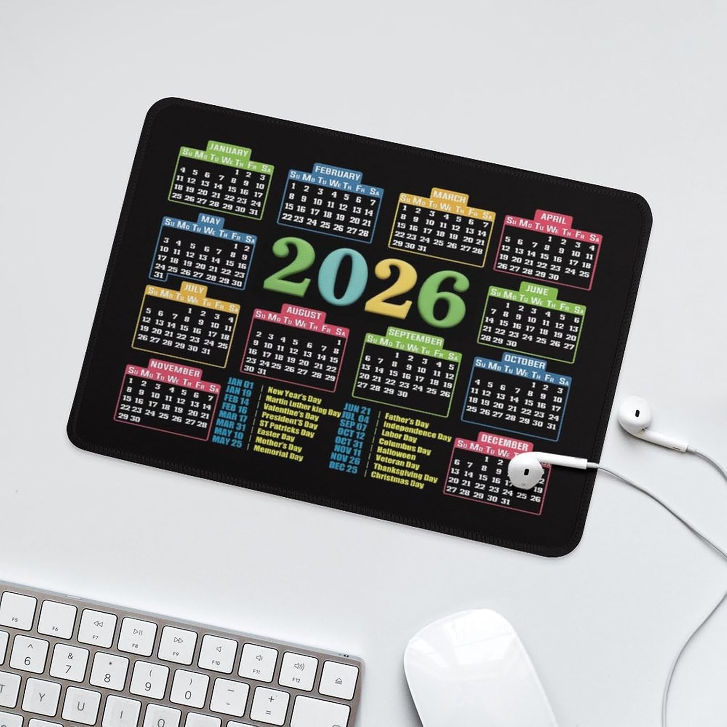 Mouse Pad 2026 Calendar Stitched Edge,Computer Mouse Pads Calendars Non-Slip Rubber Desk Mat Mousepad Gaming Office Keyboard Mat (9.45x7.87 in) (Colorful)