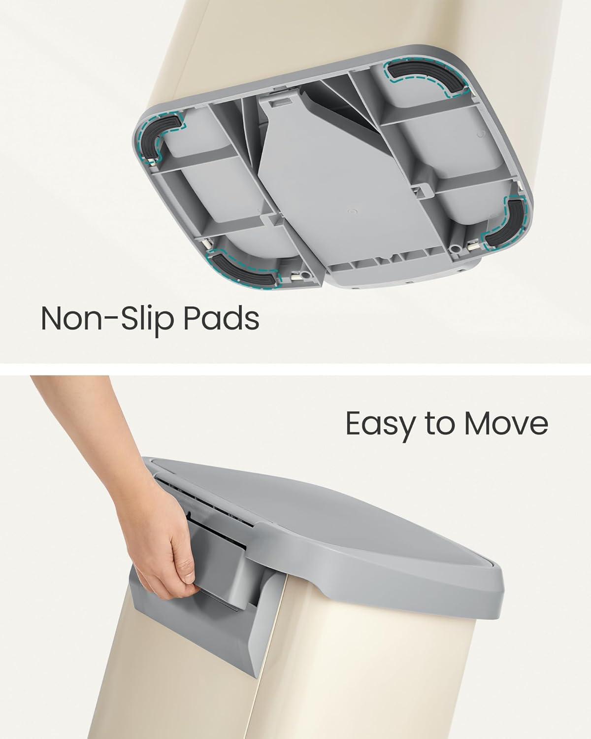 SONGMICS Kitchen Trash Can, 18-Gallon Stainless Steel Garbage Can, with Stay-Open Lid and Step-on Pedal, Soft Closure, Tall, Large and Space-Saving, Sand Beige and Dove Gray ULTB520A01