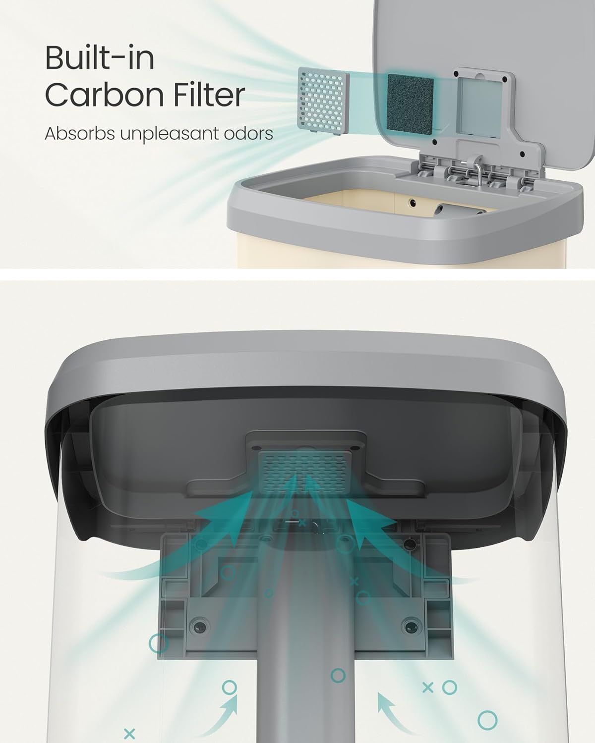 - [Thoughtful Detailing] The carbon filter in the lid helps absorb unpleasant odors, keeping your kitchen smelling fresh. Included are 15 liner bags (16-18 gallons) that perfectly fit this kitchen can