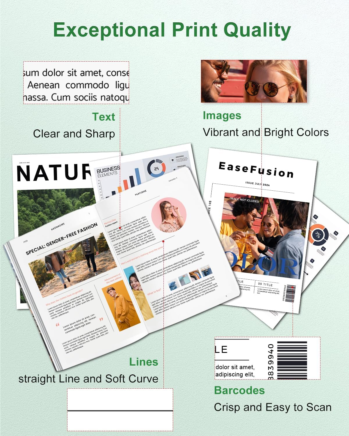 - Superior Printing Quality: All EaseFusion 63 xl inkjet cartridges black and color are rigorously tested to ensure consistently outstanding performance. You can enjoy sharp, clear text and vibrant, stunning colors without any blocking issues