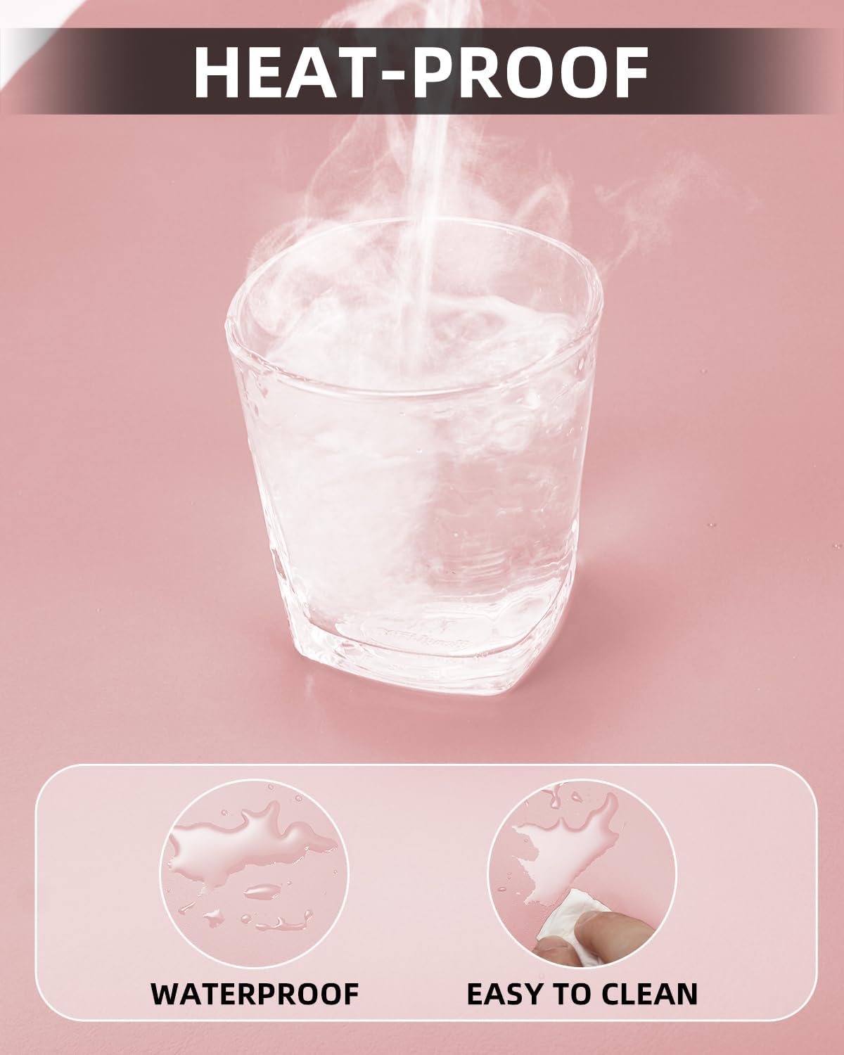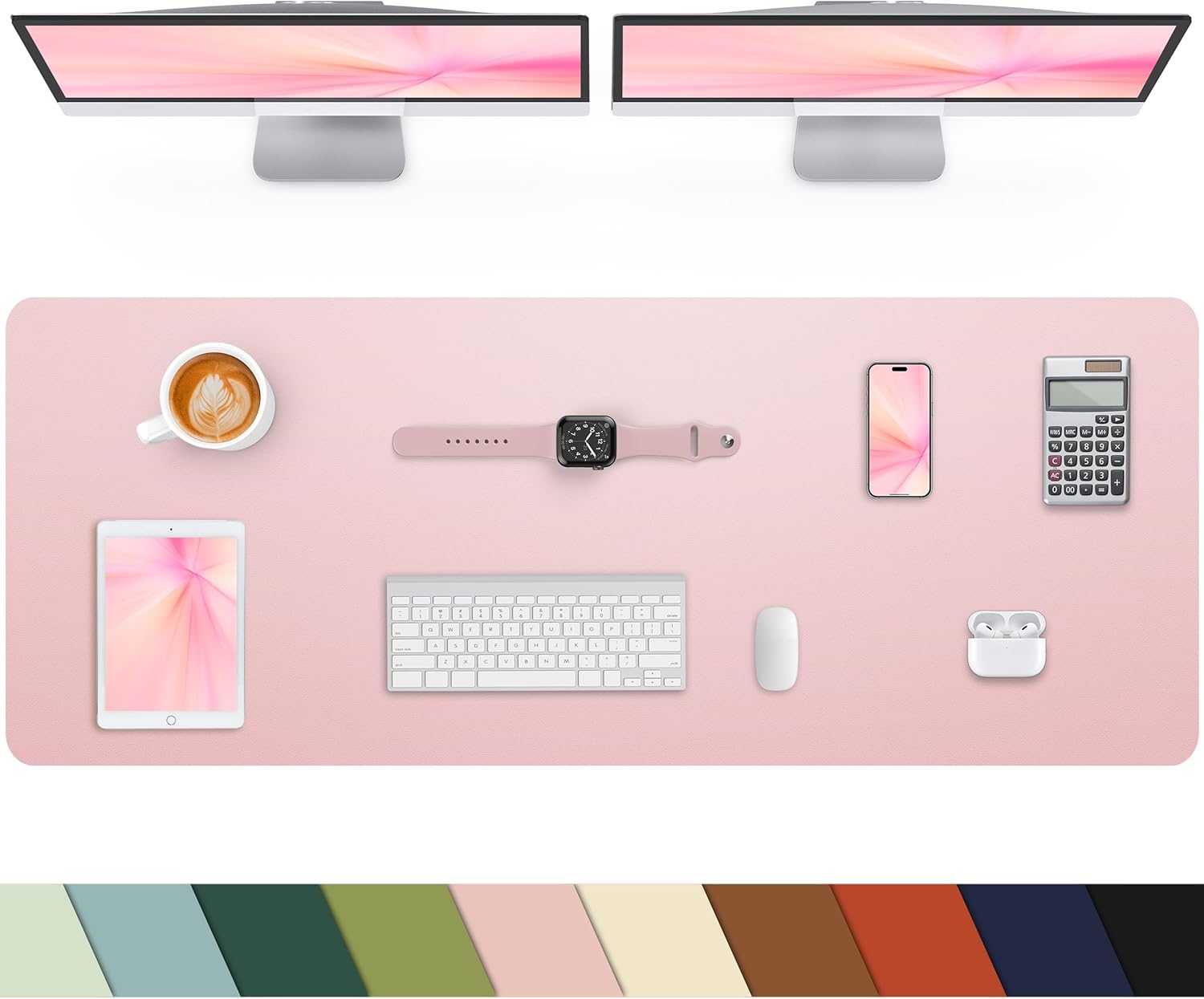 Leather Desk Pad Protector, Large Desk Mat, Mouse Pad, Non-Slip PU Leather Desk Blotter,Desk Cover mat,Desk mat for Keyboard and Mouse,Mat for Office&Home (Rose Pink, 48" x 17")
