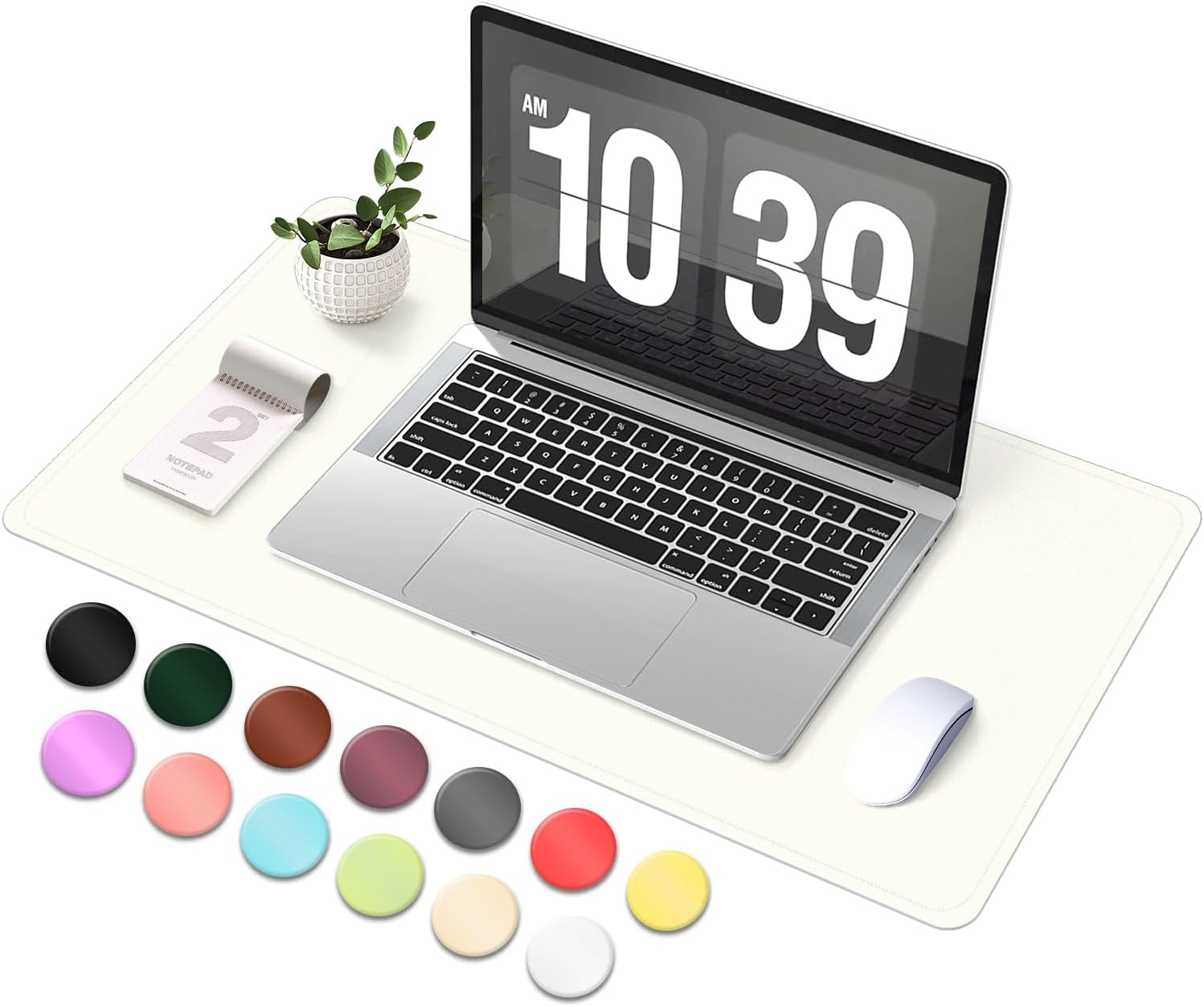 Leather & Suede Desk Pad Protector - Non-Slip, Waterproof Blotter Mat, Large Mouse Pad, Office & Home Desk Cover (White, 23.6" x 13.7")