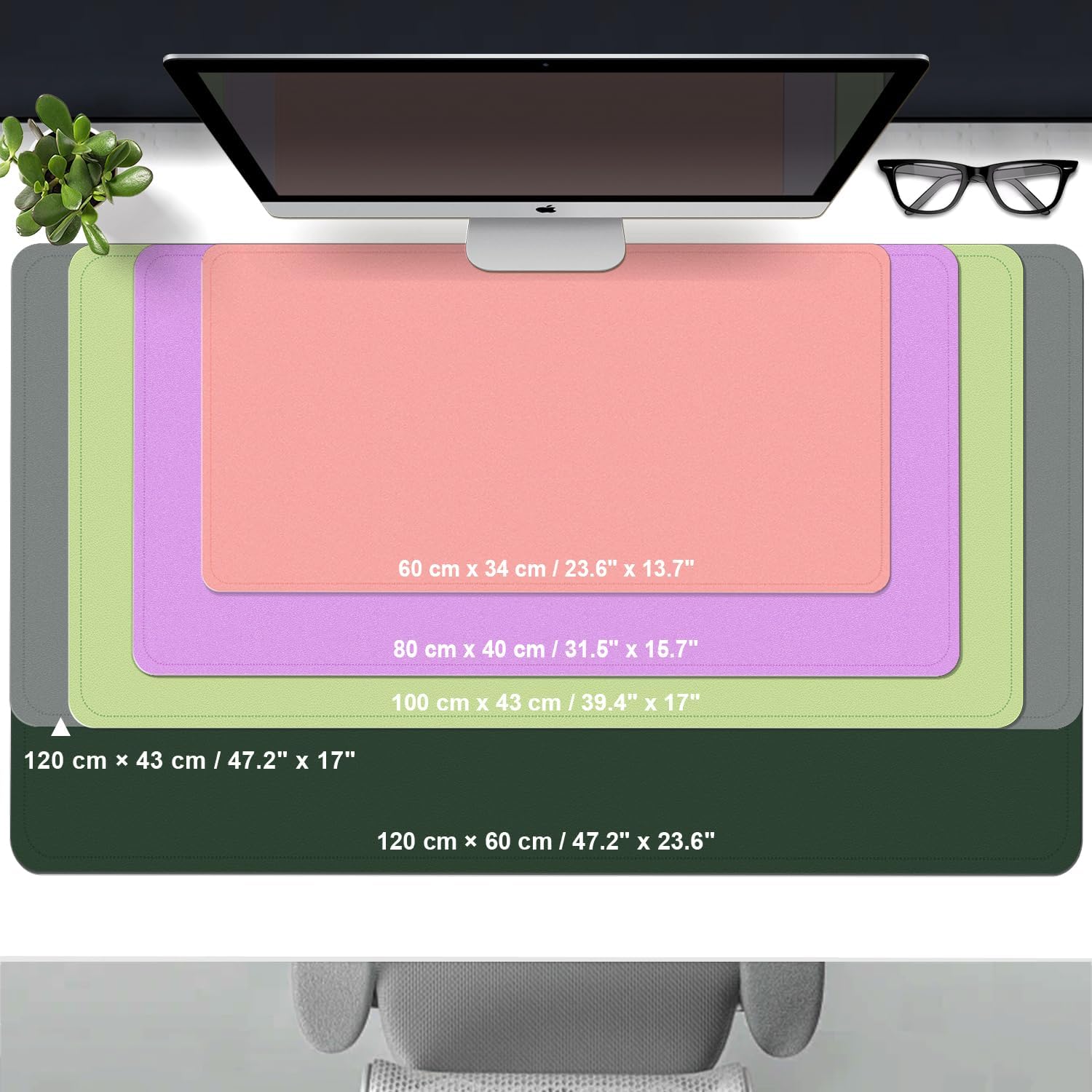 - Style Desk Pad Mat for Office/Home: Available in a range of colors, a classic dark colors, black, brown, dark green, etc., or lively and fashionable bright colors, pink, matcha, purple, etc., showcasing your personal style to workspace. Upgrade your office or home workstation with laptop mat and enjoy both its functionality and aesthetic appeal.