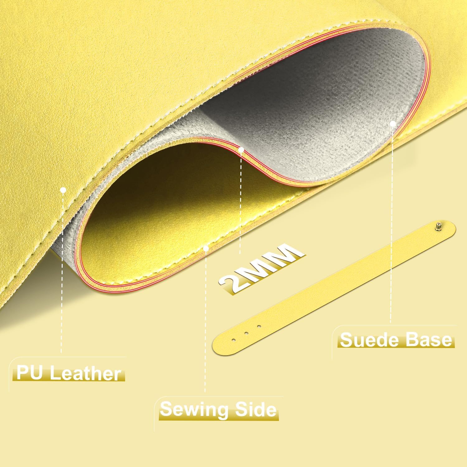 Leather Desk Pad Protector, 39.4'' X 17'' Large Mouse Pad, Office Desk Mat, Non-Slip PU Leather & Suede Base Desk Blotter, Laptop Desk Pad, Desktop Mat for Office Home, Yellow