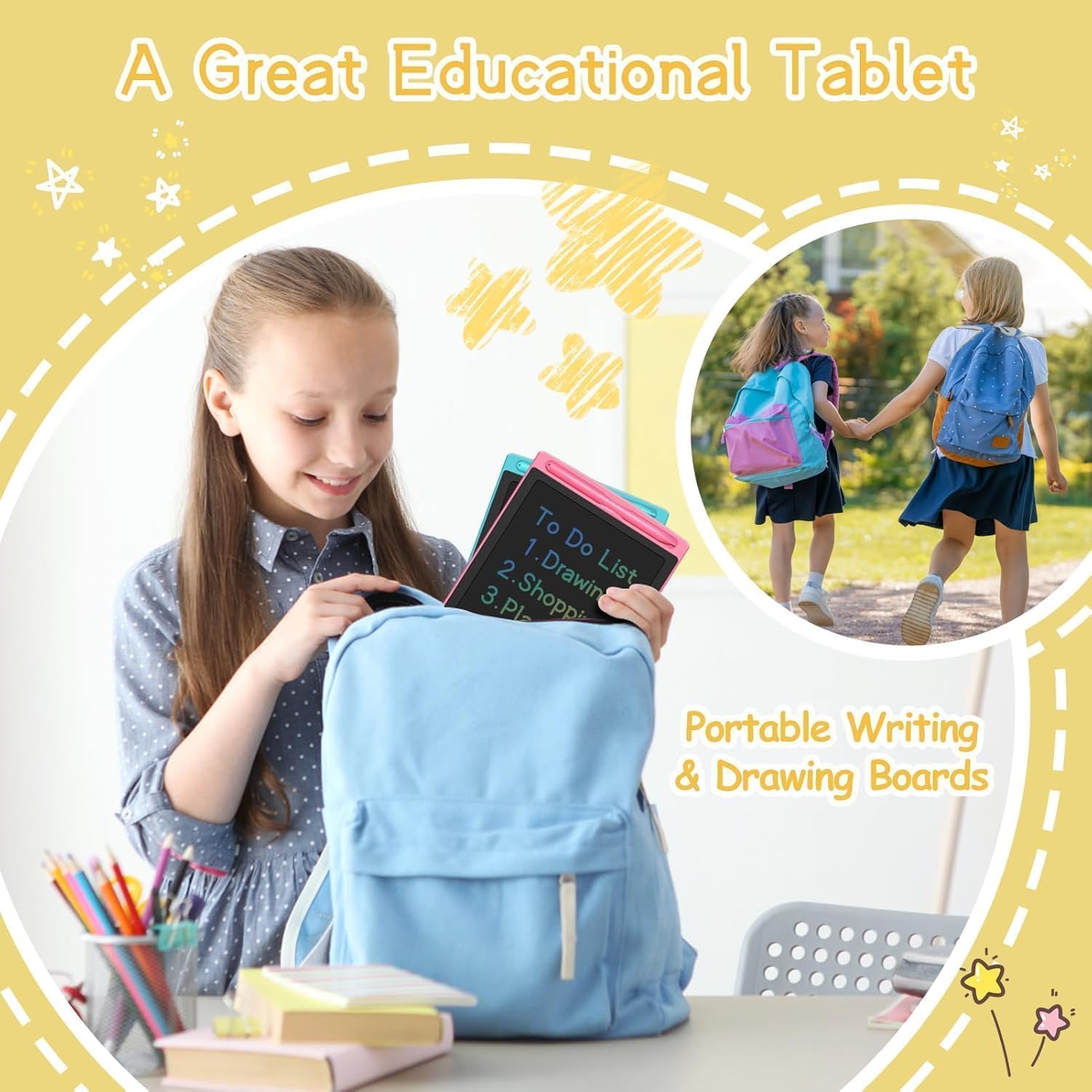 - Portability and Reliability: Doodle boards are convenient for kids to use and carry. 8.5 in is like A5 paper offering enough drawing space. Lighter weight, 92 grams but impact-resistant. Kids drawing tablets can be easily put in school bags, handbags, travel bags as a great travel essential toys for kids. Kids writing tablets come with pen tethers to prevent it from failing.