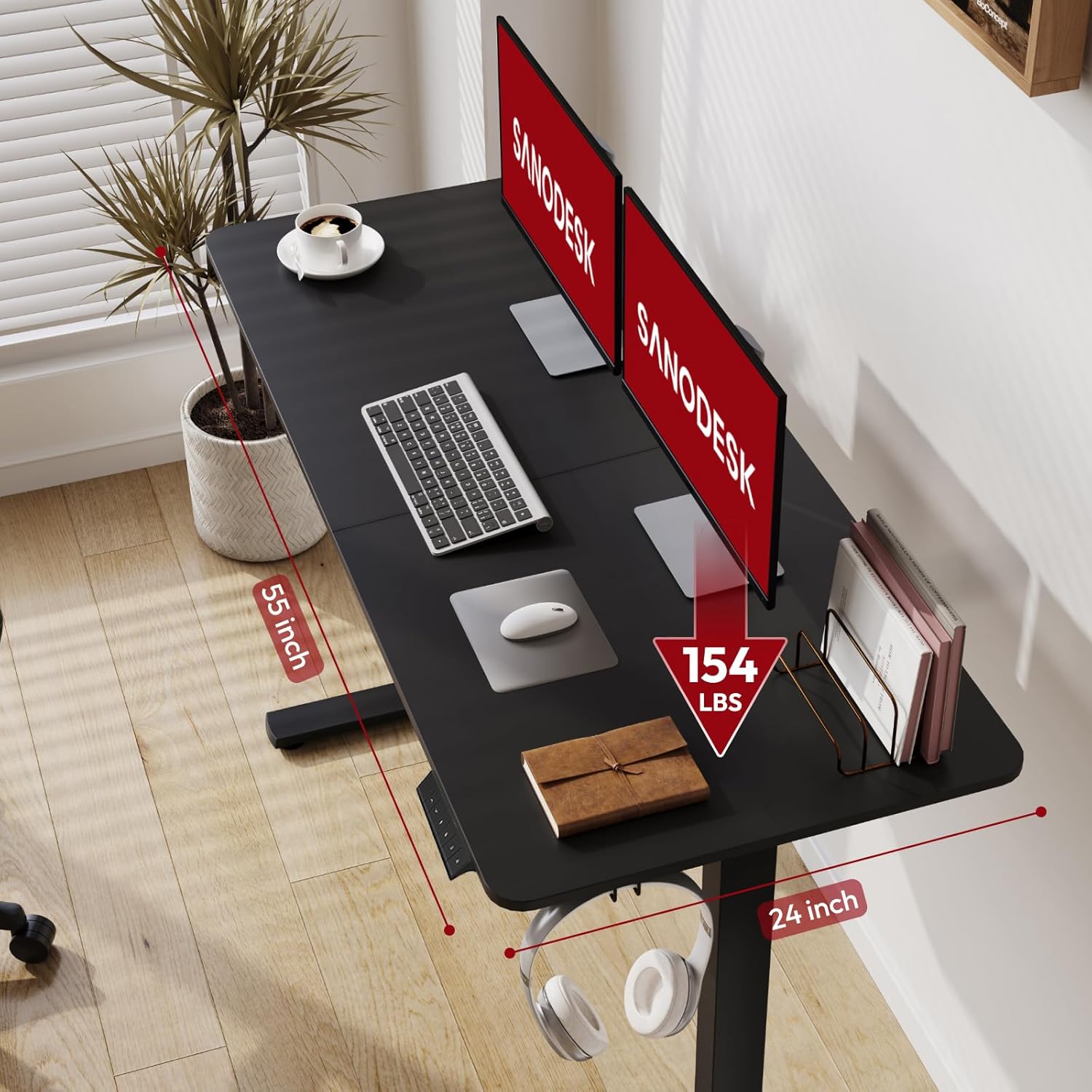 SANODESK Electric Standing Desk 55x24 Inch Height Adjustable Stand Up Desk Home Office Computer Workstation Sit Stand Home Office Desk with Splice Board (Black Frame + Black Top)