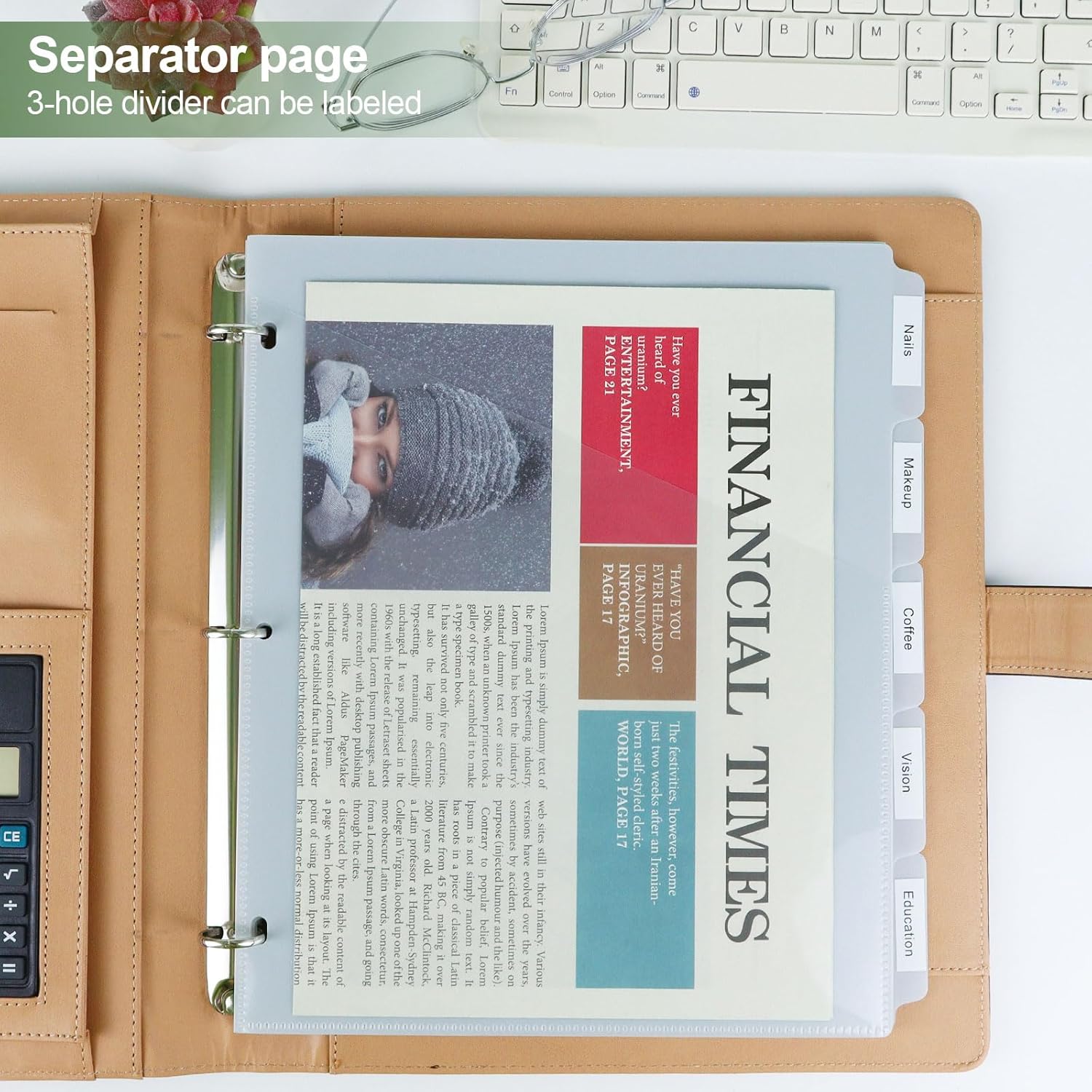 - 【Essential for schools and offices】5 tab dividers for 3 ring binder with pockets are perfect for organizing schoolwork, personal finances, recipes, coupons, sheet music, or anything else that needs sorting.