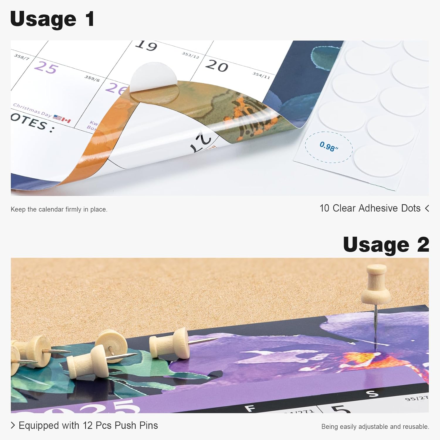 - ✨ Laminated Calendar with Dates: Waterproof wall calendar comes with a mini eraser, four dry-erase markers, 12 push pins, and 10 transparent round stickers. 2 yearly calendar planner covers the time range from July 2024 to June 2026, making it perfect for long-term use.
