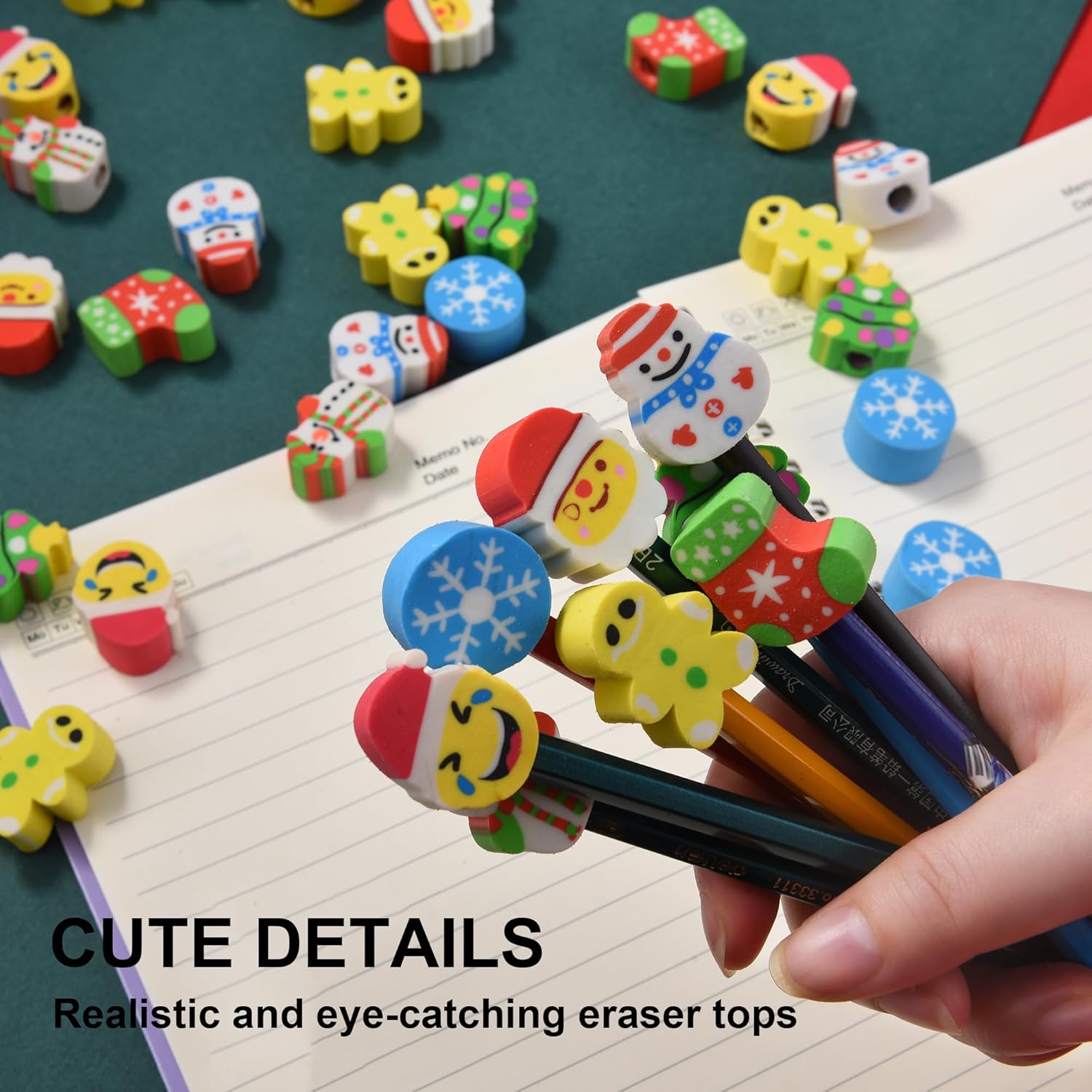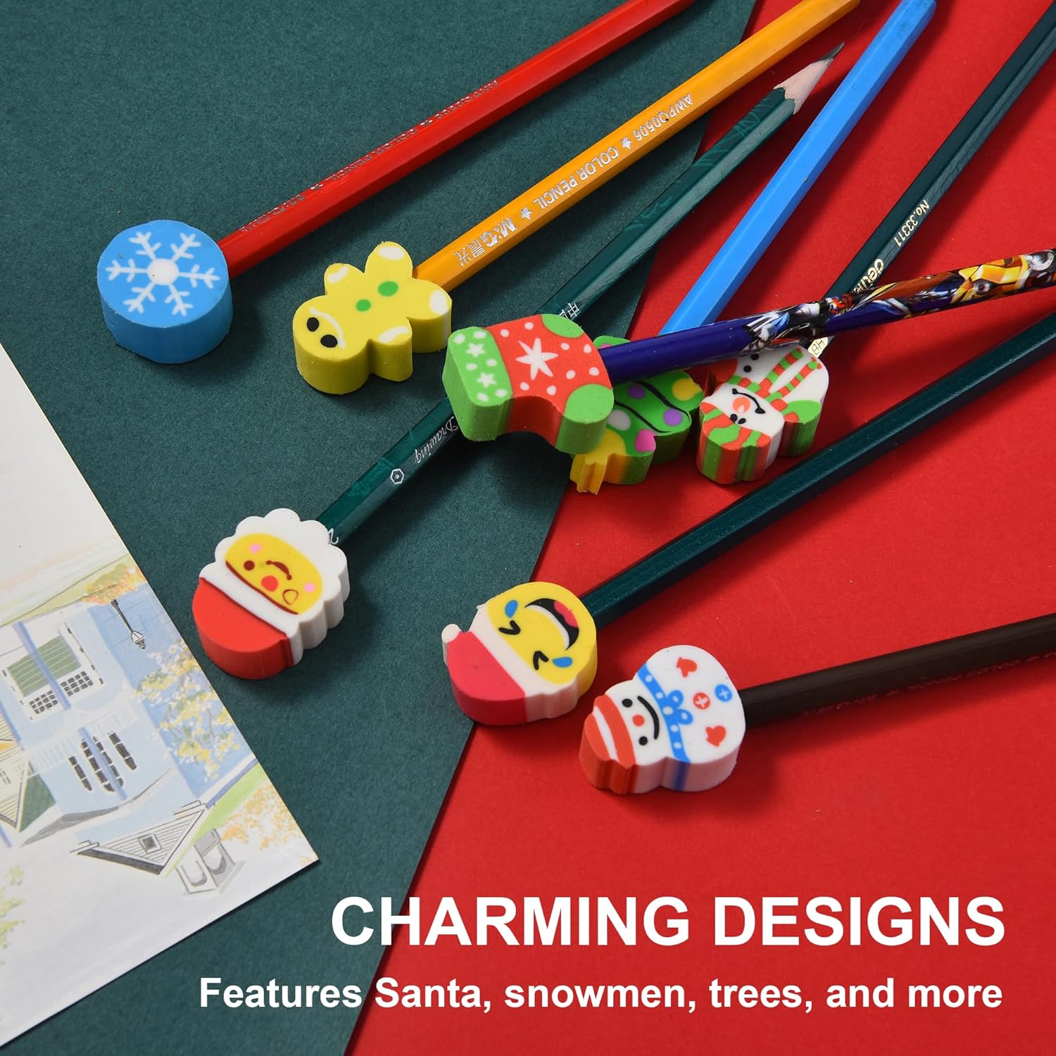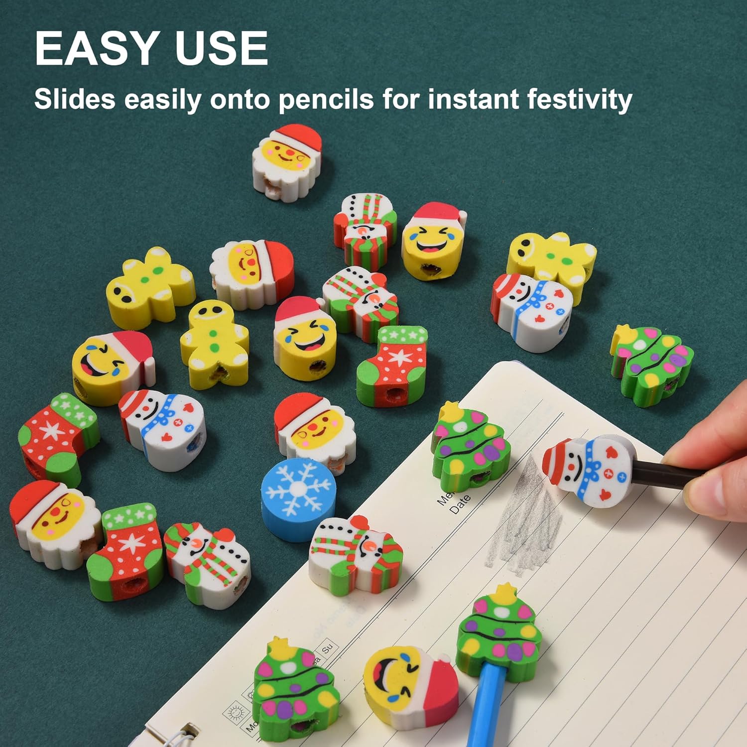 - Versatile Use: These erasers easily slide onto the tops of pencils, adding a festive touch to any writing instrument, perfect for school, home, or holiday crafting