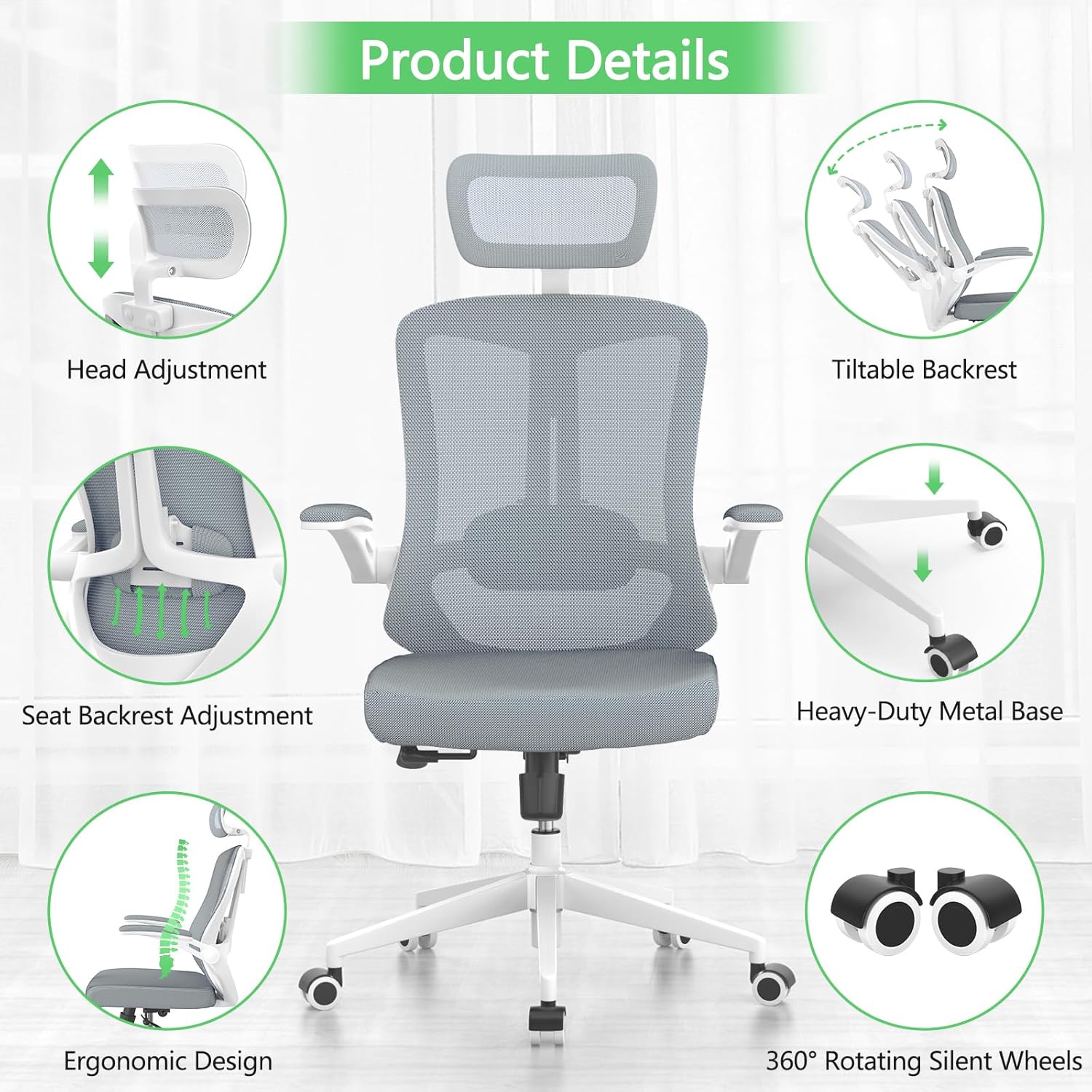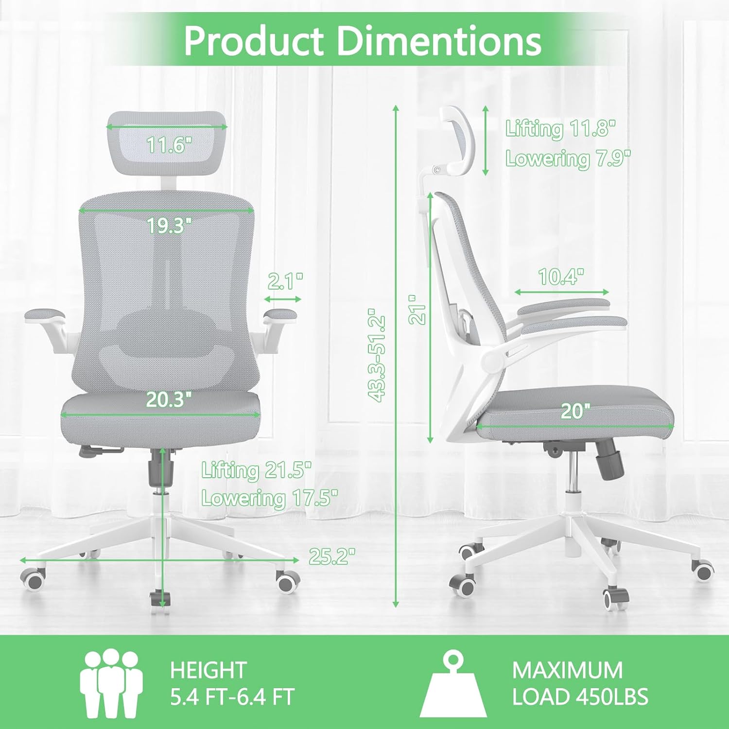 - 【Function and Design】Ergonomic design helps the backrest has prominent lumbar support to help you maintain a relaxed posture during long hours of work or study, comfortable mesh with back support points can fit the natural curvature of the spine, the armrests of the computer chair can provide comfortable support for the arms, and it can be flipped up when not in use, effectively saving space