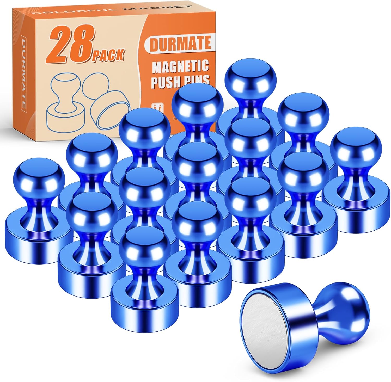 Blue Metal Refrigerator Magnets Strong, Tiny Cute Magnets for Whiteboard, 28 Pack Small Magnetic Push Pins, Magnetic Round Clips Heavy Duty for Kitchen, Office, Crafts, Wall