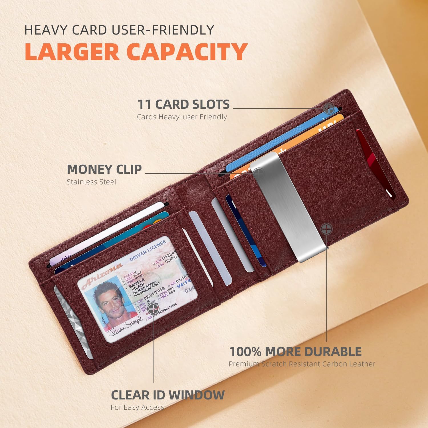 RUNBOX Slim Wallets for Men - Leather Money Clip Mens Wallet - RFID Blocking Front Pocket Bifold Wallet - Thin Credit Card Holder with Gift Box