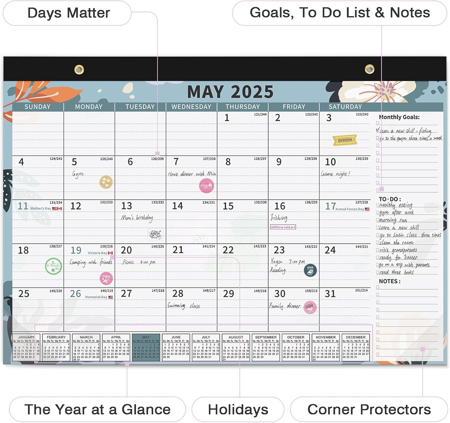 - Humanized Design: The calendar set includes a detachable string, a magnetic sticker and planning stickers. The wall calendar can be easily hung through the string and magnetic sticker provided. A variety of planning stickers can also add some interest to the calendar.