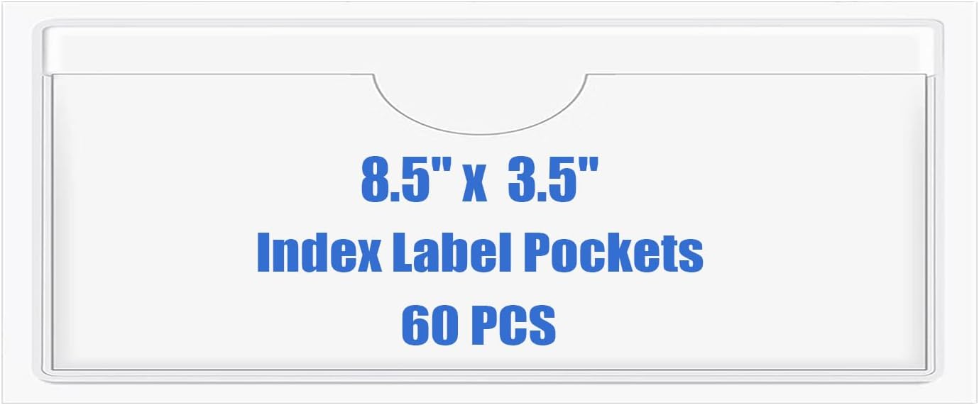Origin-Joy 60 PCS Self Adhesive Index Card Pockets with Top Open, Clear Plastic Label Holder for Cards of Note, Library and Business, Adhesive Label Pockets & Card Holder (8.5 x 3.5 inch)
