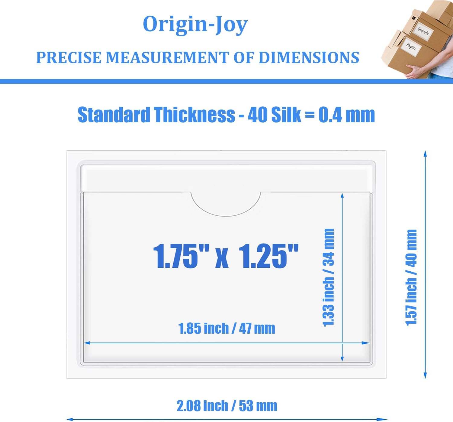 - 【Quality Vinyl Material】Origin-Joy's adhesive index label pockets sleeves are specially customized for customers' common sizes, made from quality vinyl with a self-adhesive backing, the thickness is 40 silk, in keeping lightweight and smooth while having good toughness, not easy to deformation, can be used for a long time.