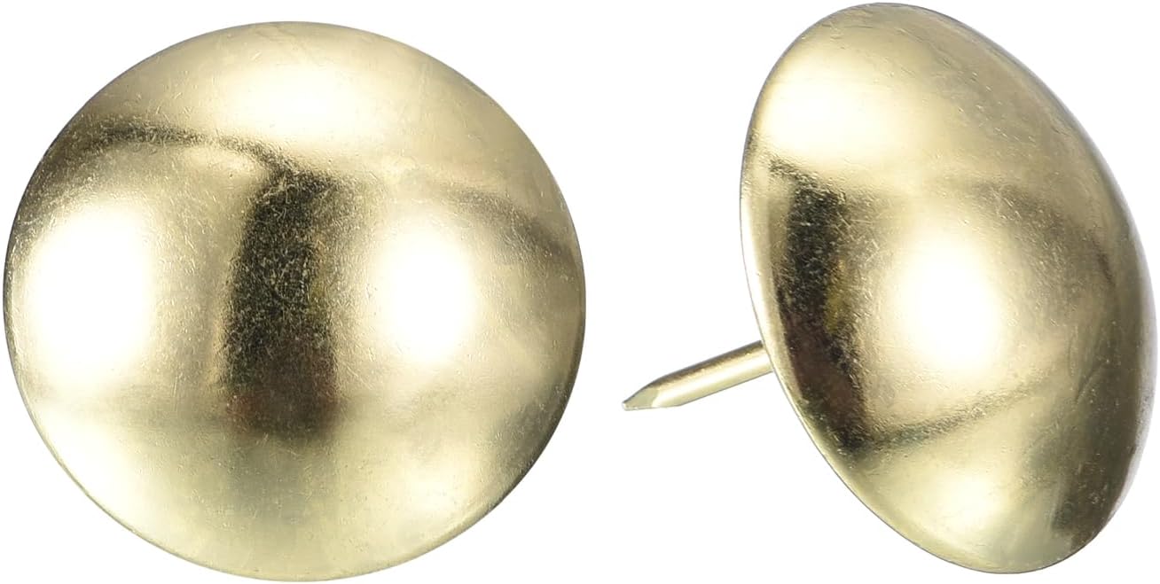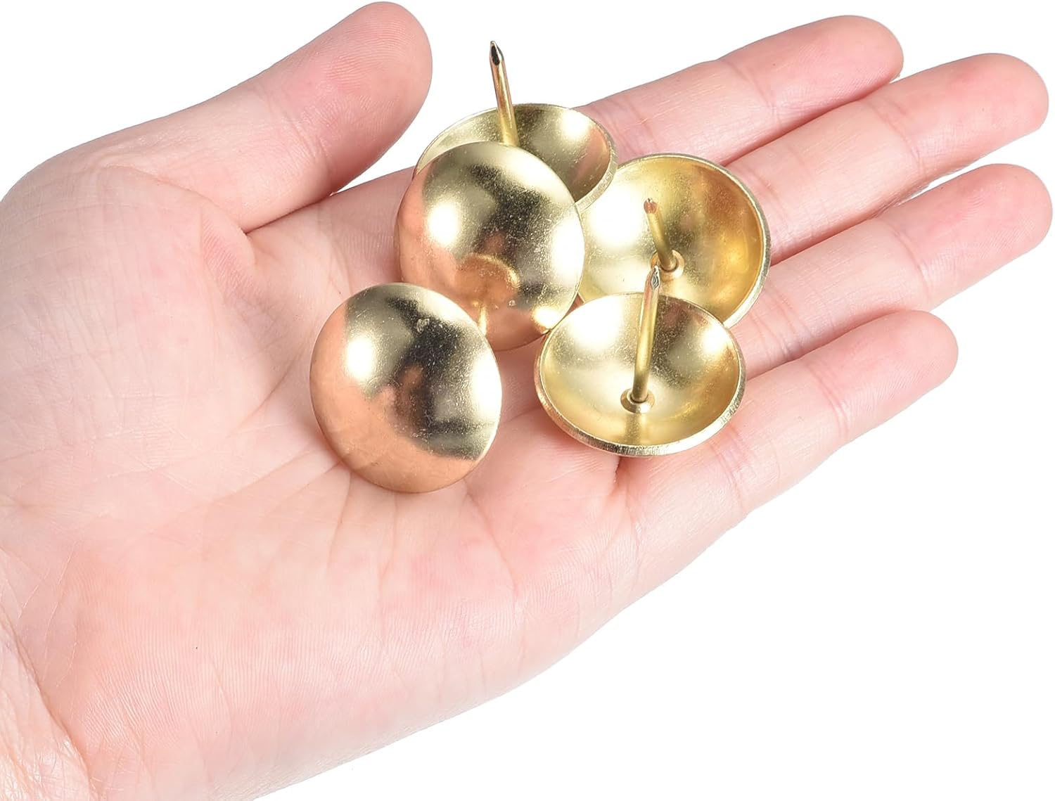 - Specifications: Material: Carbon steel; Color: Gold; Diameter of nails head: 25mm/0.99inch; Shank length: 25mm/0.985inch; Package Content: 50Pcs x Upholstery Tacks Nail Pins