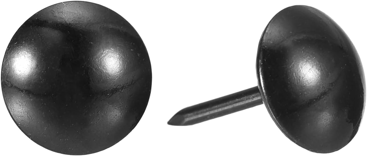 - Specifications: Material: Carbon steel; Color: Black; Diameter of nails head: 11mm/0.44inch; Shank length: 17mm/0.67inch; Package Content: 500Pcs x Upholstery Tacks Nail Pins