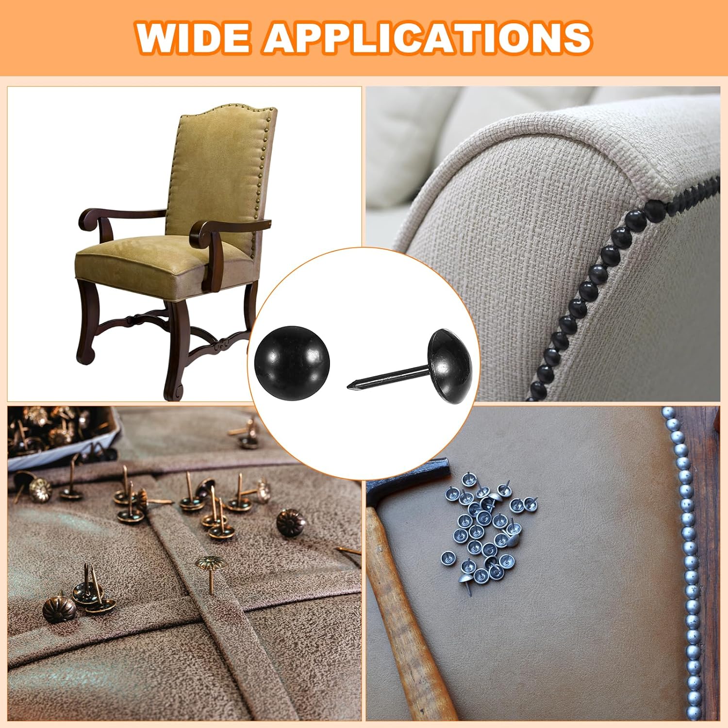 - Feature: These metal thumb tacks are for decorating furniture, such as sofas, headboards, and wooden furniture, as well as for crafting jewelry boxes and other DIY projects. They can also be used to securely attach paper items or photos to cork boards without causing damage.
