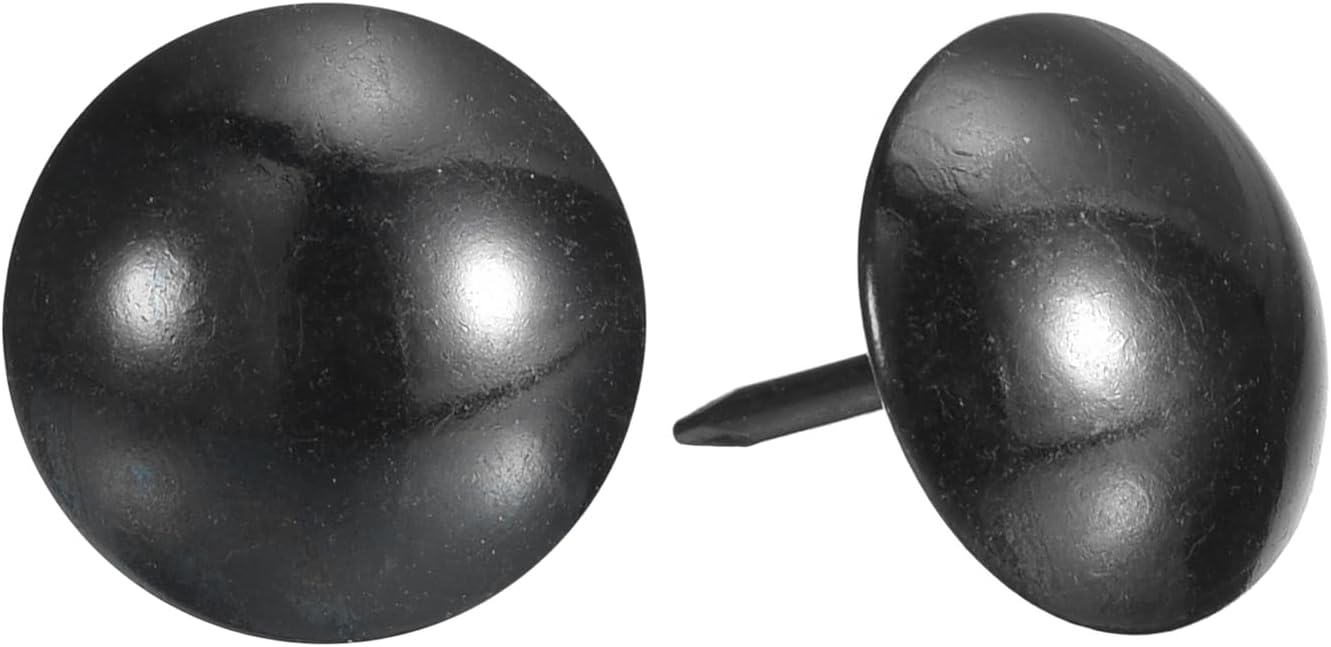 - Specifications: Material: Carbon steel; Color: Black; Diameter of nails head: 19mm/0.75inch; Shank length: 23mm/0.906inch; Package Content: 100Pcs x Upholstery Tacks Nail Pins