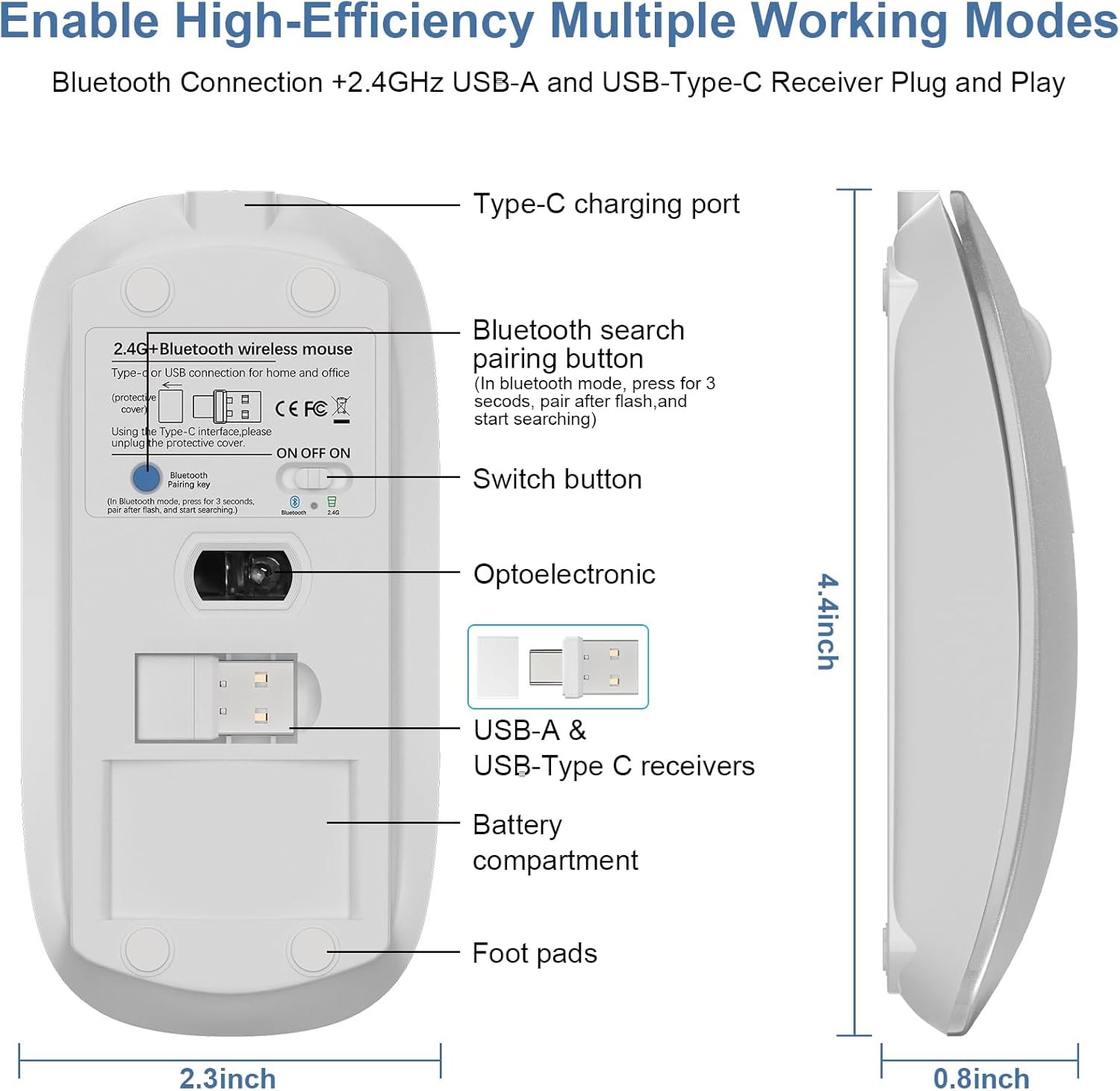 - [More Advanced Bluetooth Technology and Dual-port 2-in-1 Receiver 2.4GHz USB-A and USB-C ]: Kovess bluetooth wireless mouse for macBook pro compatible with most system including PC,Notebook,Desktop,Pad,Laptop,mac OS; Support Win7/8/10/11 Linux OS X or Android Tablet.Wider application.