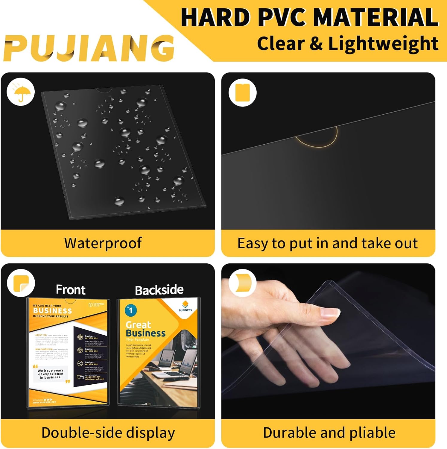 - CLEAR DOCUMENT SLEEVES SIZE - Suitable for displaying 8.5"x11" standard letter size paper, plastic display sign thickness 0.04",can hold about 4 sheets