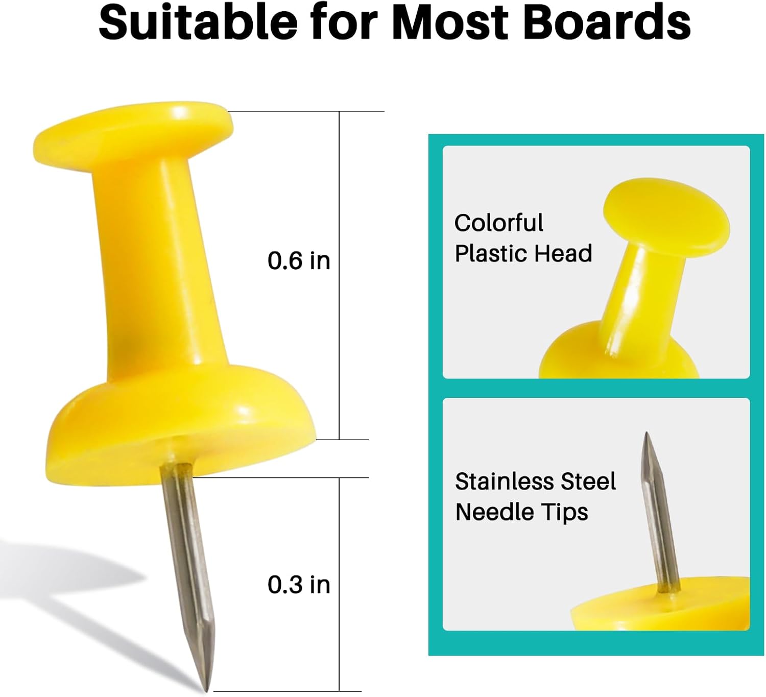 - 【Easy to Use & Storage】 - The push pins offer multiple usage possibilities and come with a storage box, ensuring their long-term usability. The tip of each tacks measures approximately 0.6 inches in length, while the head is around 0.3 inches. Their durable construction make them effortless to handle and highly reusable, without any sacrifice in performance or quality