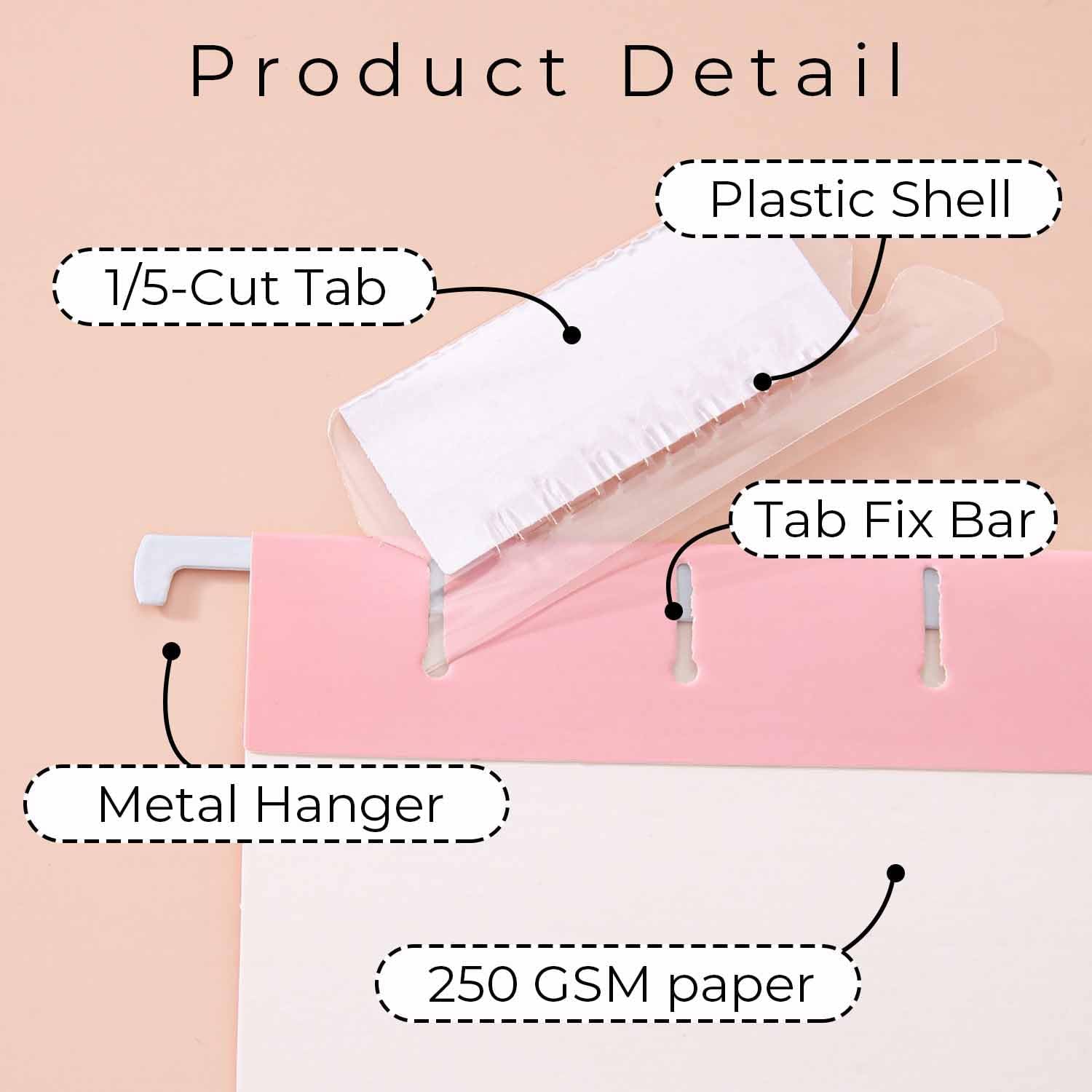- Sorted Tabs - Each hanging folder features a 1/5-cut custom tab for hassle-free organizing and access to documents. Our pretty hanging folder can store bulky files, medical charts, or product manuals and keep files separate