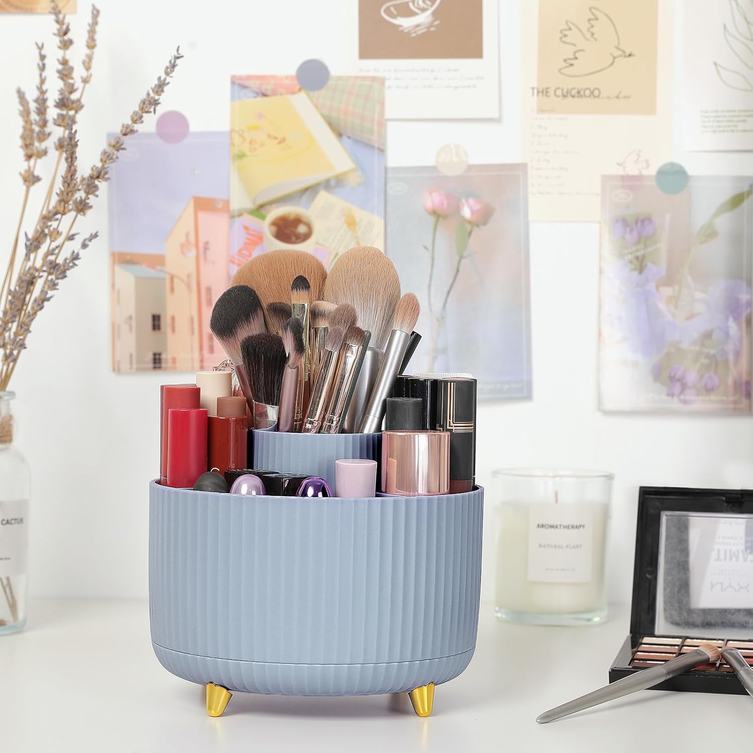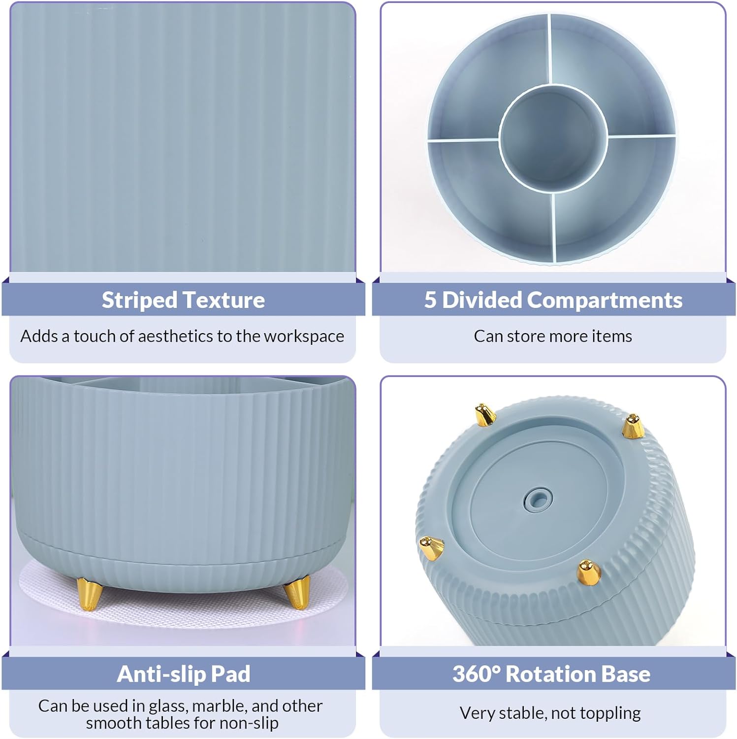 SKYDUE 360 Degree Rotating Desk Organizer, Dual-Purpose Pencil Pen Holder, Rotating Desk Pen Organizer with 5 Slots, Pencil Cup for Office, School, Home (Airy Blue)