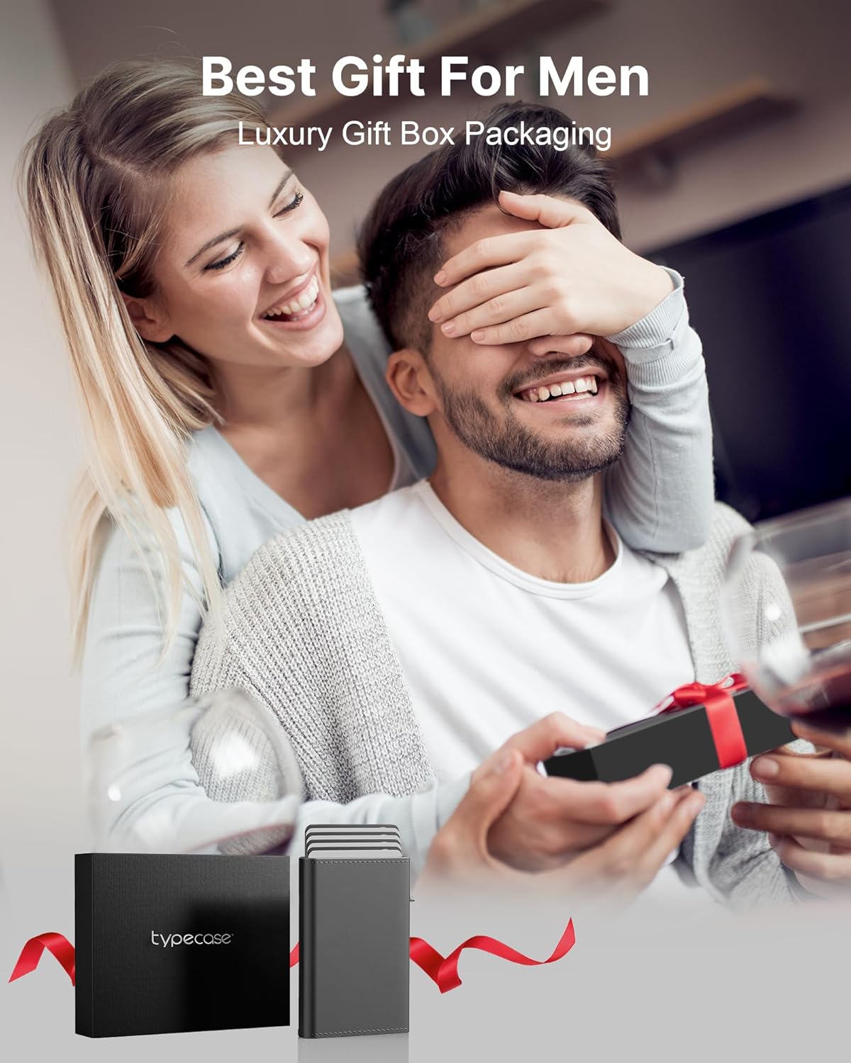 typecase Mens Wallet Card Holder: Pop Up Aluminum Case, Premium Genuine Leather, Smart, RFID Blocking, Slim, Minimalist, Front Pocket - 9-14 Card Capacity | ID Window | Cash Slot - Deep Grey