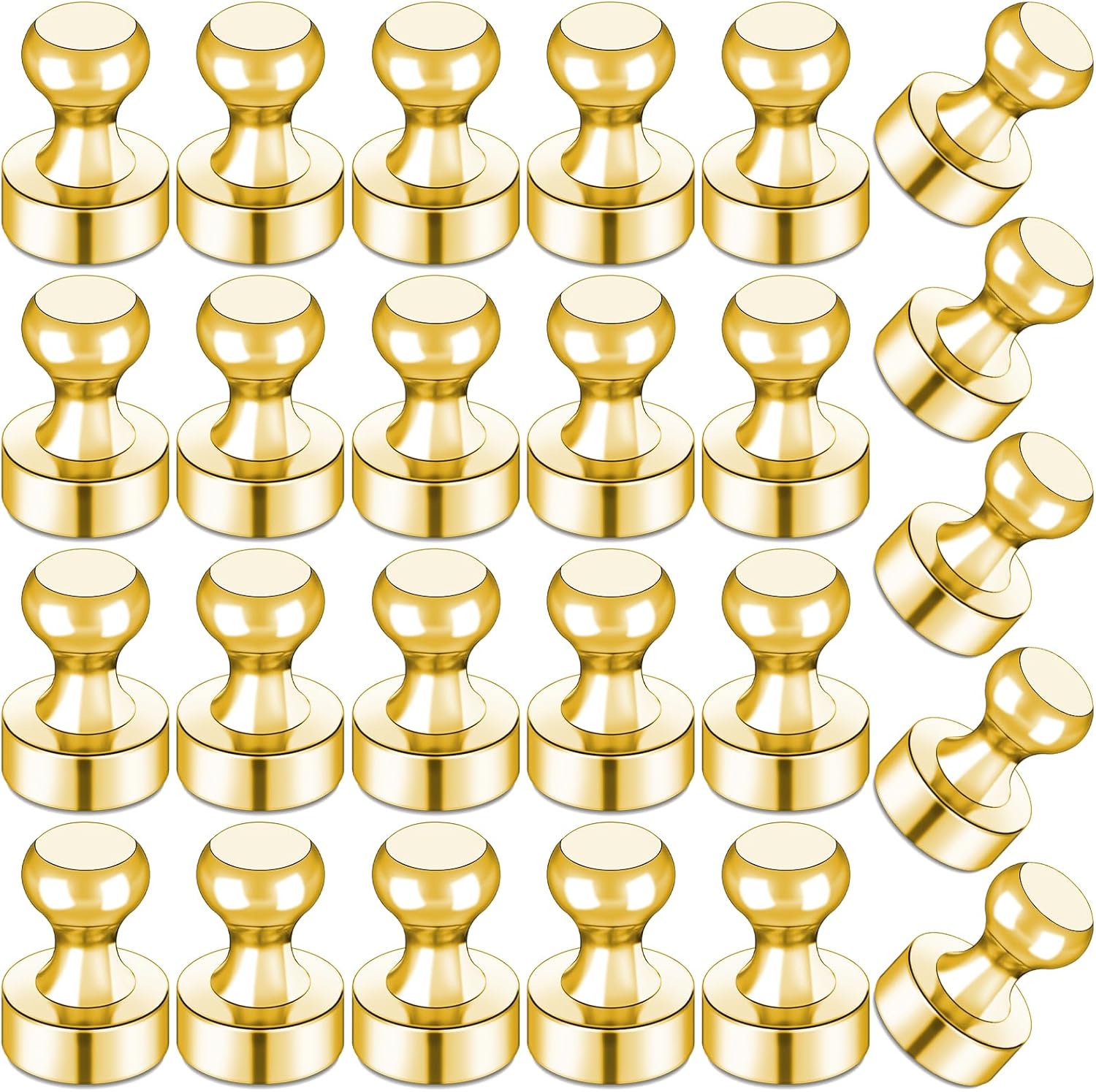 LOVIMAG Refrigerator Magnets, Fridge Magnets, Strong Whiteboard Magnets, Gold 25 Pcs Magnetic Push Pins, Strong Metal Magnets for Fridge, Whiteboard, Office, Classroom, Map, Kitchen