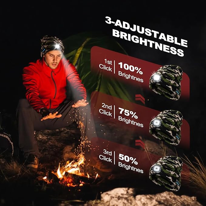 Gifts for Men, Rechargeable Bluetooth Music Unisex Beanie Hat with Light, Stocking Stuffers for Women, Birthday Gifts for Men, for Him, Camouflage