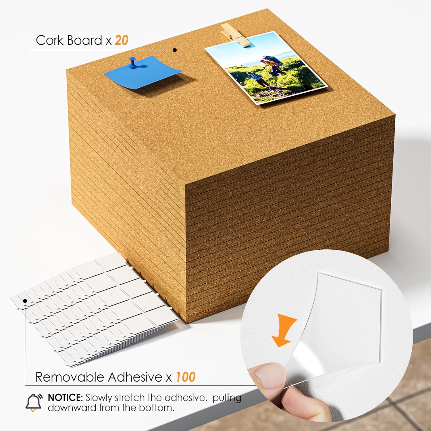 - EASY INSTALLATION: Each cork board comes with 5 removable double-sided self-adhesive stickers for effortless setup, allows you to attach the cork boards to flat wall without drilling holes, keeping your walls intact. Simply follow the provided precautions when disassembling, leaves no residue after removal