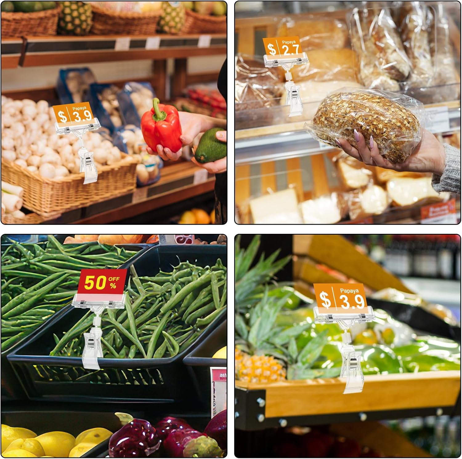 - Wide Application: Clip-On Sign clips versatile for price, merchandise display in shops, retail stores, supermarkets, fruit shops, warehouse, malls, and exhibitions. Also ideal for advertising, notes, reminders, photos at home or office. Whether it is placed on the edge of a shelf, a hanger rail or other structure, it is no problem