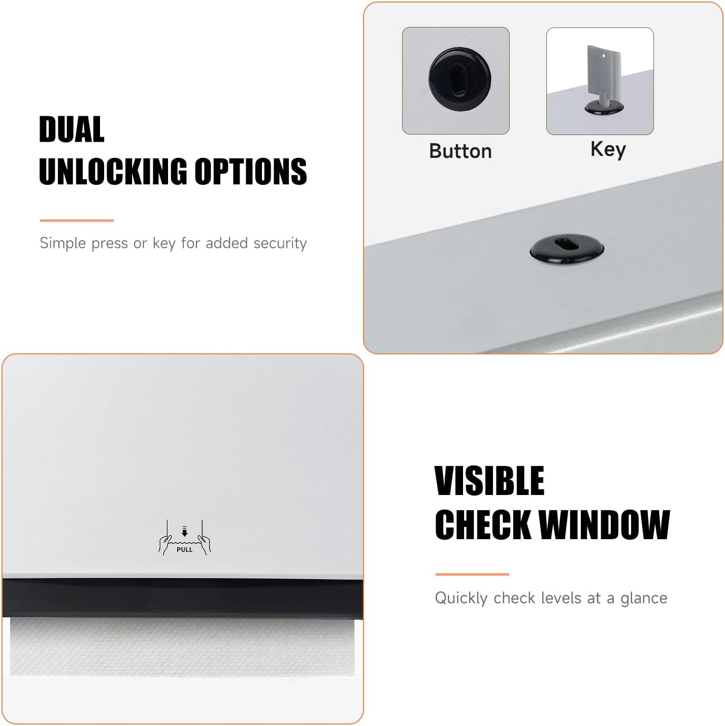 - 200-Sheet Capacity – Holds up to 200 multi-fold/tri-fold paper towels (within 3.1” width when folded), reducing refill frequency and saving time and effort