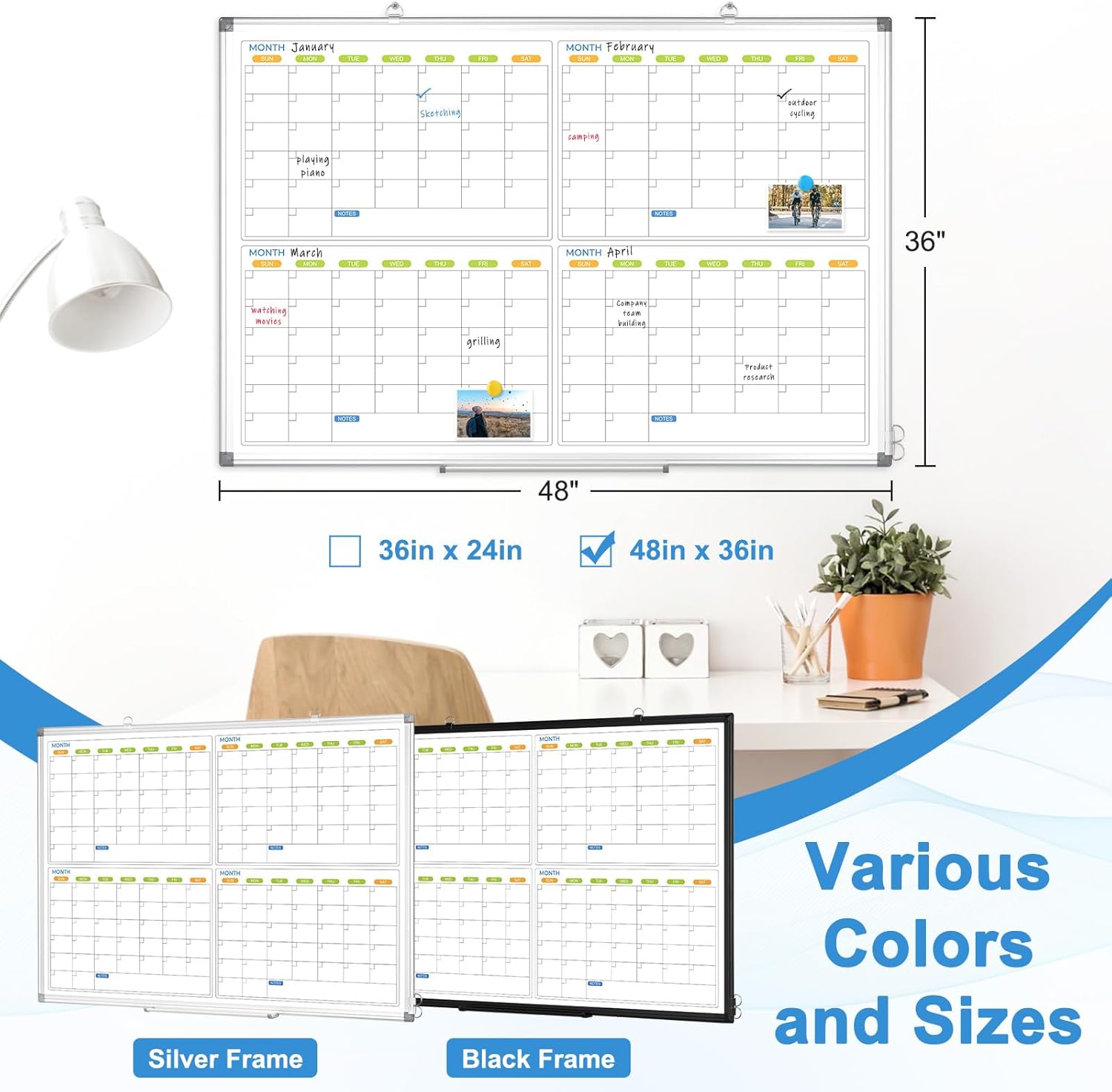 - 【4 Month Calendar Whiteboard】The 4 months dry erase calendar lets you easily plan ahead the next quarter's work, study, or goal-oriented projects in advance. Keep everything organized, visualized, and easy to track. Double-sided dry erase board features one side as a calendar and the other as a blank whiteboard, offering double the writing space for your daily to-do lists, weekly tasks, monthly plans, and reminders.