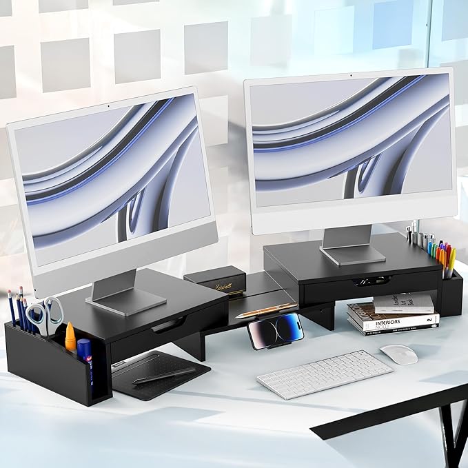 Simple Houseware Desk Dual Monitor Stand Riser with Pull-Out Drawers, Black