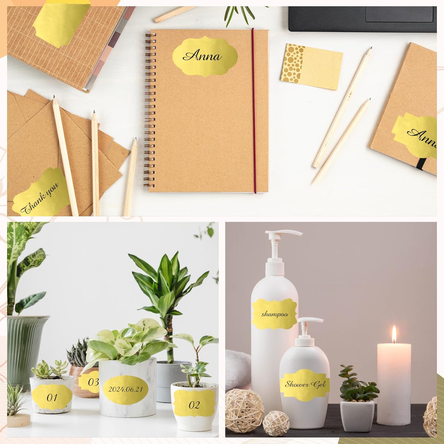 Gold Labels - 250 PCS 3" x 2" Fancy Shape Stickers for Storage Box or Food Jars