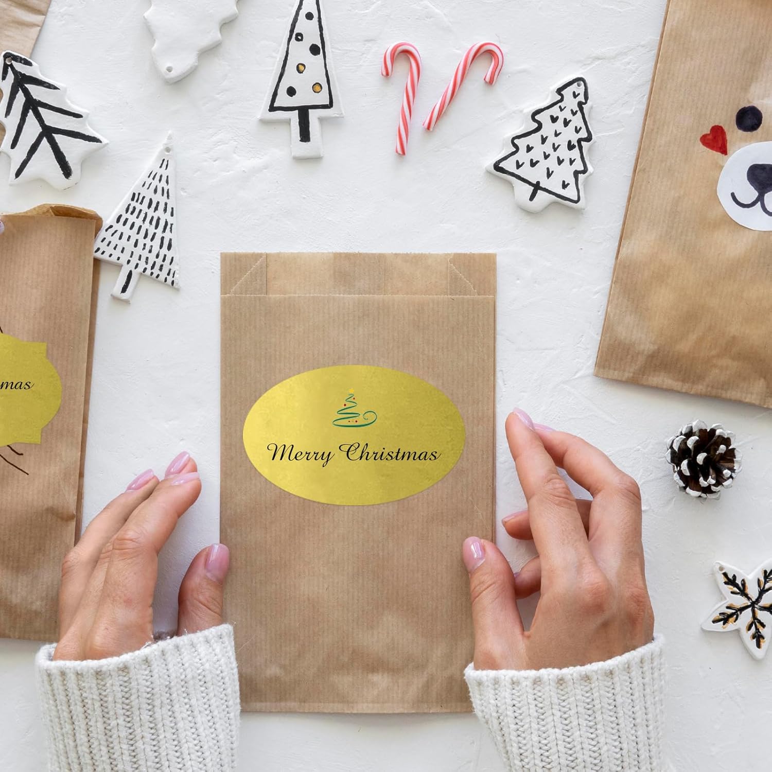 - 【Widely Usage】Just need to peel off the sticker, write words and stick them where you want. With different color paper element, these sticker labels can not only be applied as Christmas gift tags, but also for wedding, birthday, mailing labels, name tags, etc.
