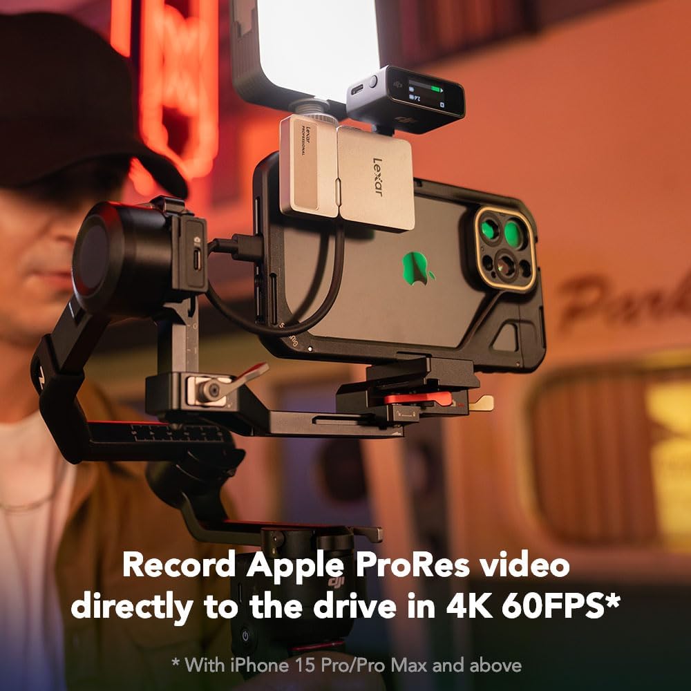 Lexar 1TB Professional Go Portable SSD w/Hub, Supports Apple 4K 60fps ProRes, Up to 1050MB/s, USB 3.2 Gen 2, Rugged, IP65, Ultracompact, Compatible w/iPhone 15/16, External SSD (LSL400S001T-RNSNU)