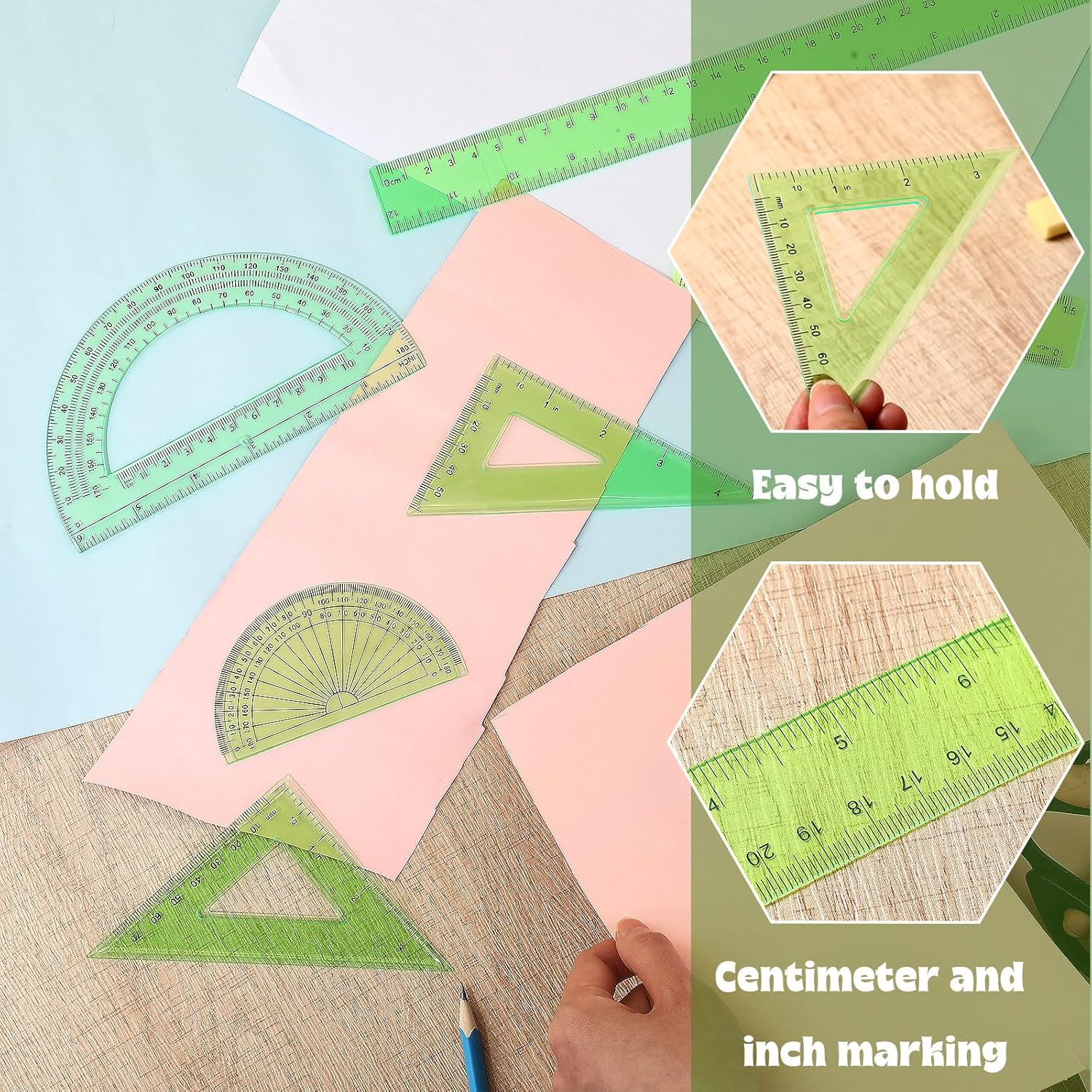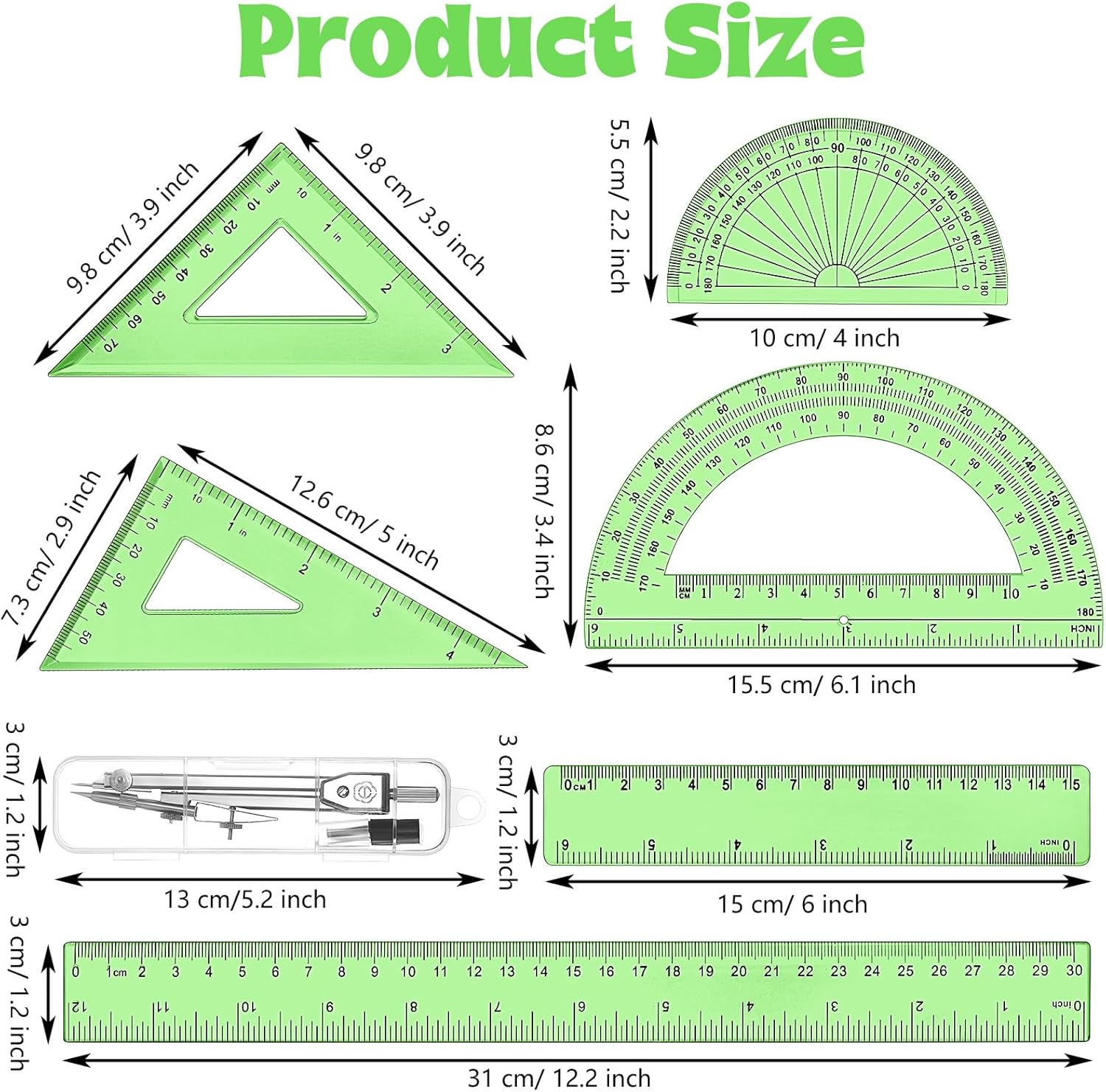 - Versatile and Essential Tools: this compass and protractor are practical tools for drawing circles and measuring angles, respectively, making them a must have for students, teachers, engineers, designers, artists, among others; This green plastic ruler set proves to be an indispensable addition to your ruler bulk collection